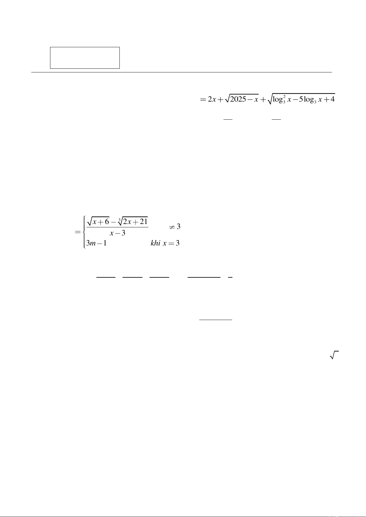 Hàm số xác định khi x 0 2 log x 5log x 4 0 3 3 2025 x 0 2025 x 2025 x 0 x 3 x 0 x 0 x 0 81 x 2025 2 log x 5log x 4 0 log x 1 x 3 3 3 3 log x 4 x 81 3 Vậy D 0;3 81;2025 2. (2đ)