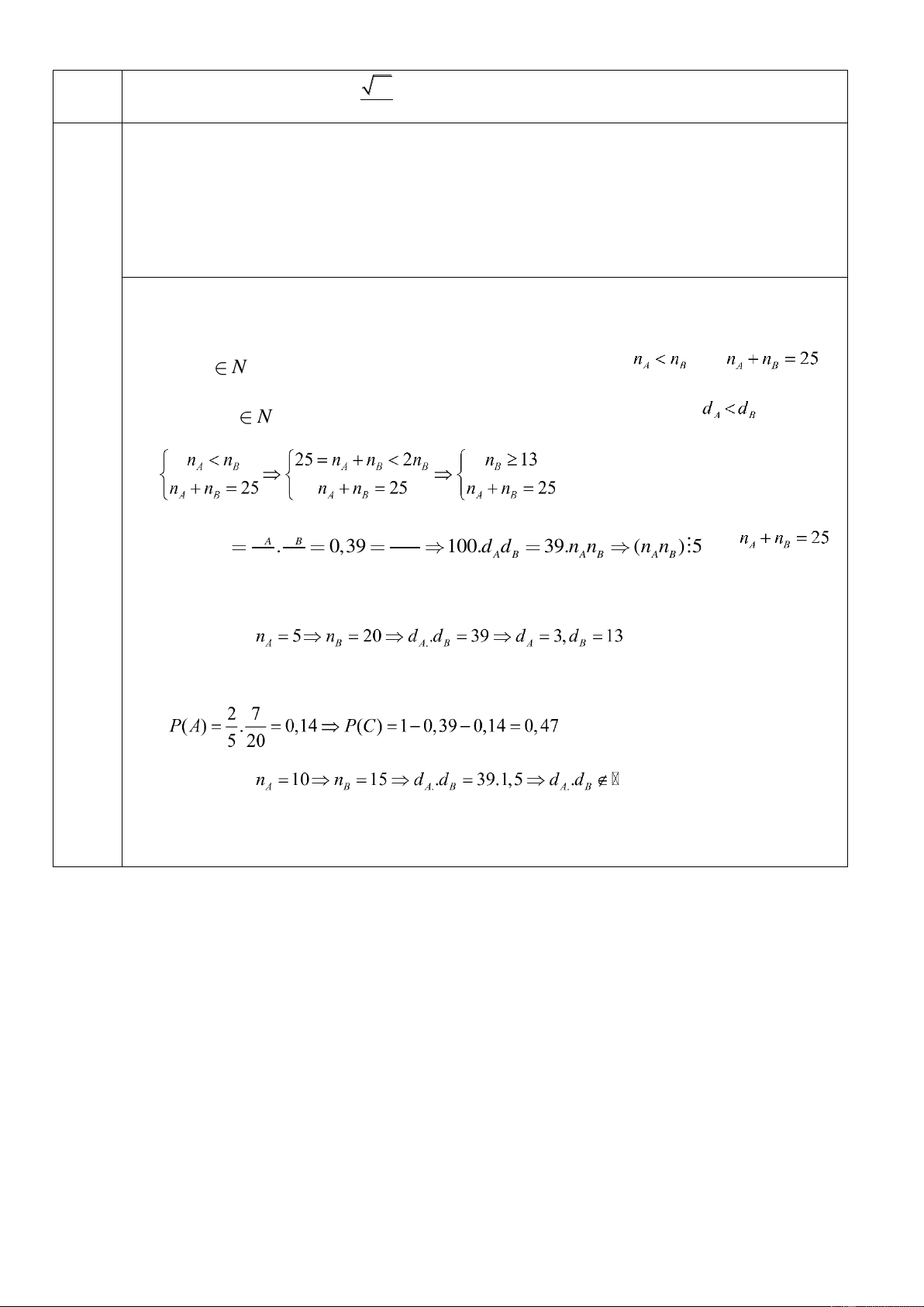 N lần lượt là số bi đen trong hộp của Ánh và Dung. Ta có A B Từ d d 39 Đề cho P(B) A . B 0,39 100.d d 39.n n (n n ) 5 và n n 100 A B A B A B A B