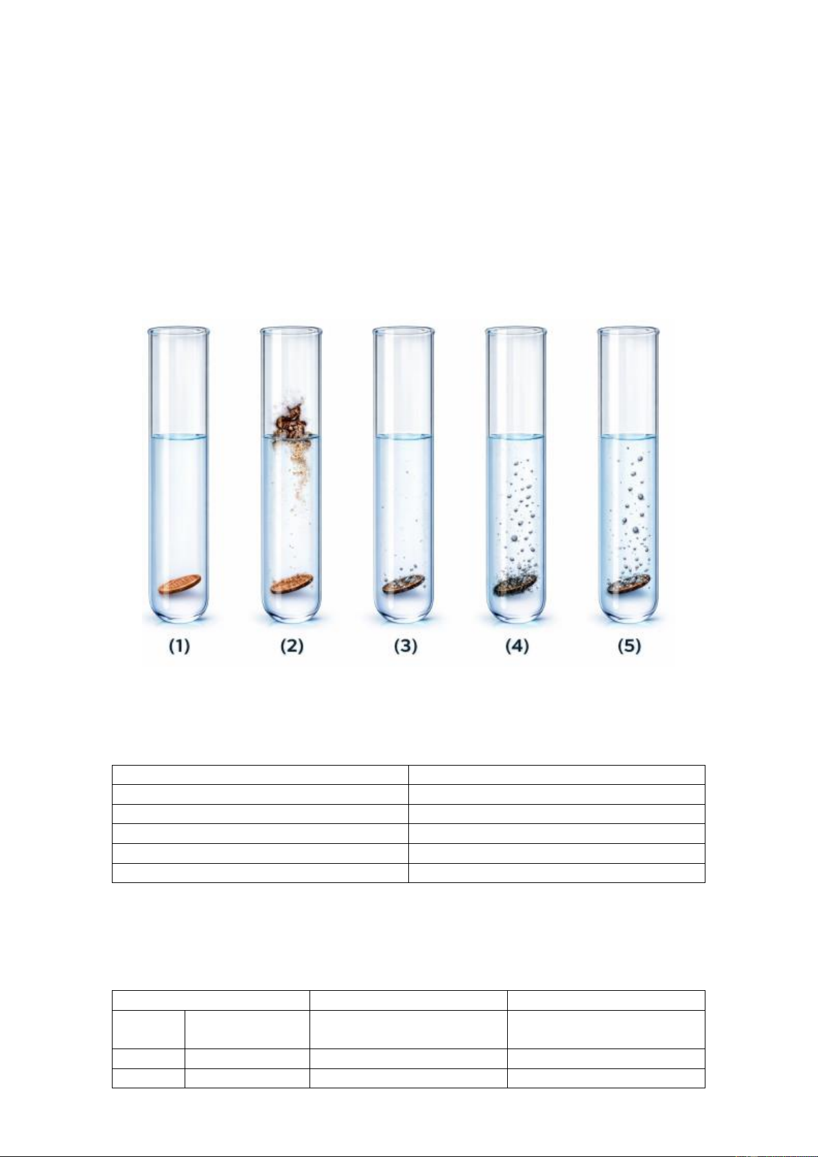 Câu 16. Cho 5 mẫu kim loại Mg, Cu, Na, Pb, Fe (không theo thứ tự) vào 5 ống nghiệm đều chứa 5,0 mL