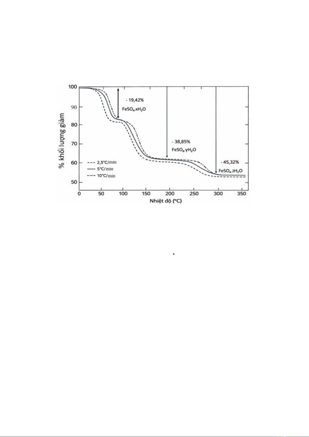 heptahydrate (FeSO₄·7H₂O) có độ tinh khiết 99,99% với các khoảng nhiệt độ tăng dần và xử lý số liệu,
