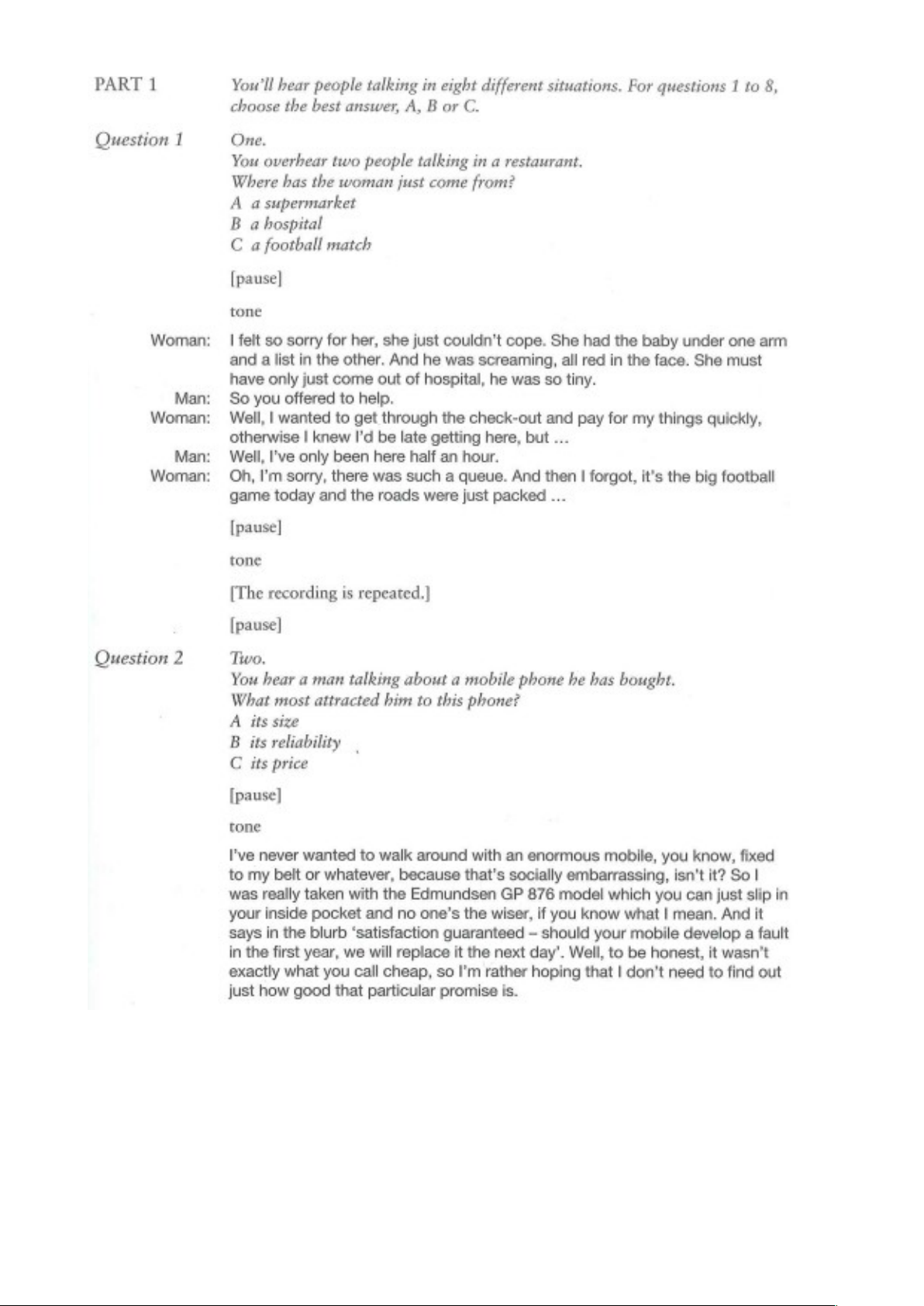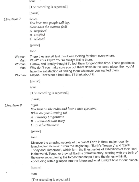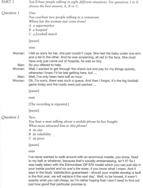 Part 1. You will hear people talking in eight different situations. For questions 1-8, choose the best answer (A, B or C).