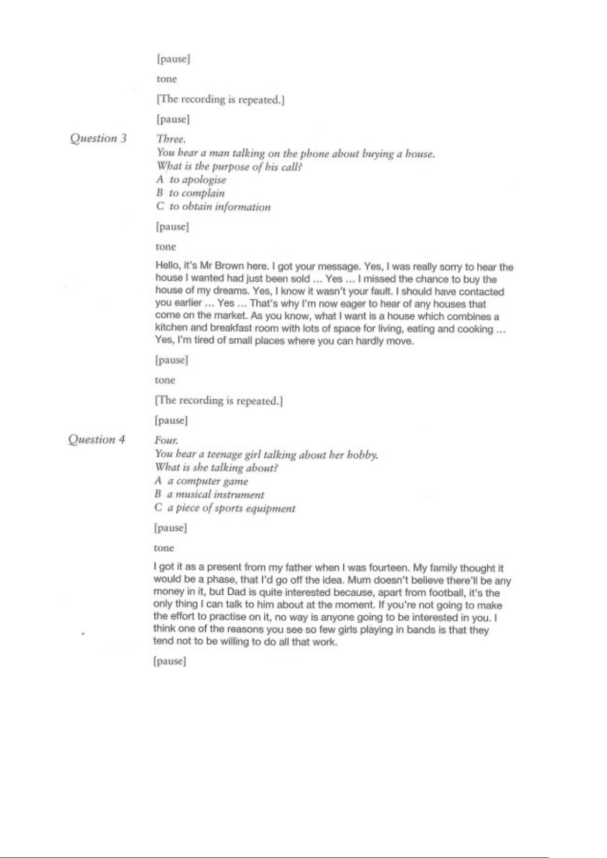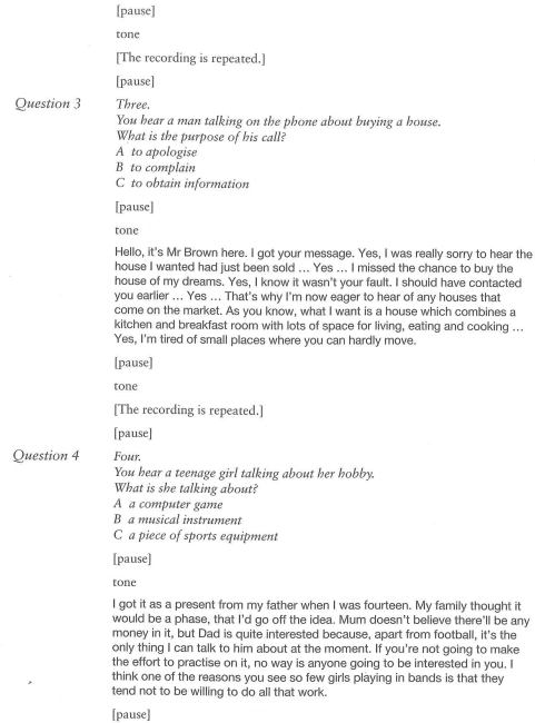 • Mỗi phần được nghe 2 lần, mở đầu và kết thúc mỗi phần có tín hiệu.