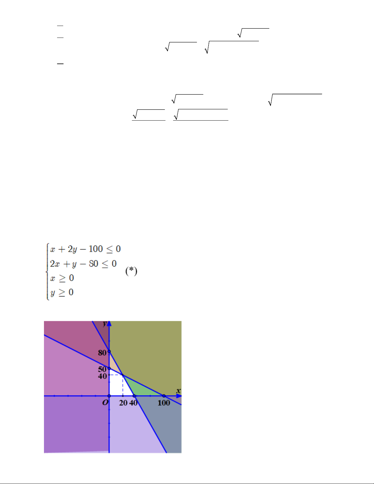 2x + 4y ≤ 200 hay x + 2y - 100 ≤ 0 ; 30x +15y ≤ 1200 hay 2x + y - 80 ≤ 0