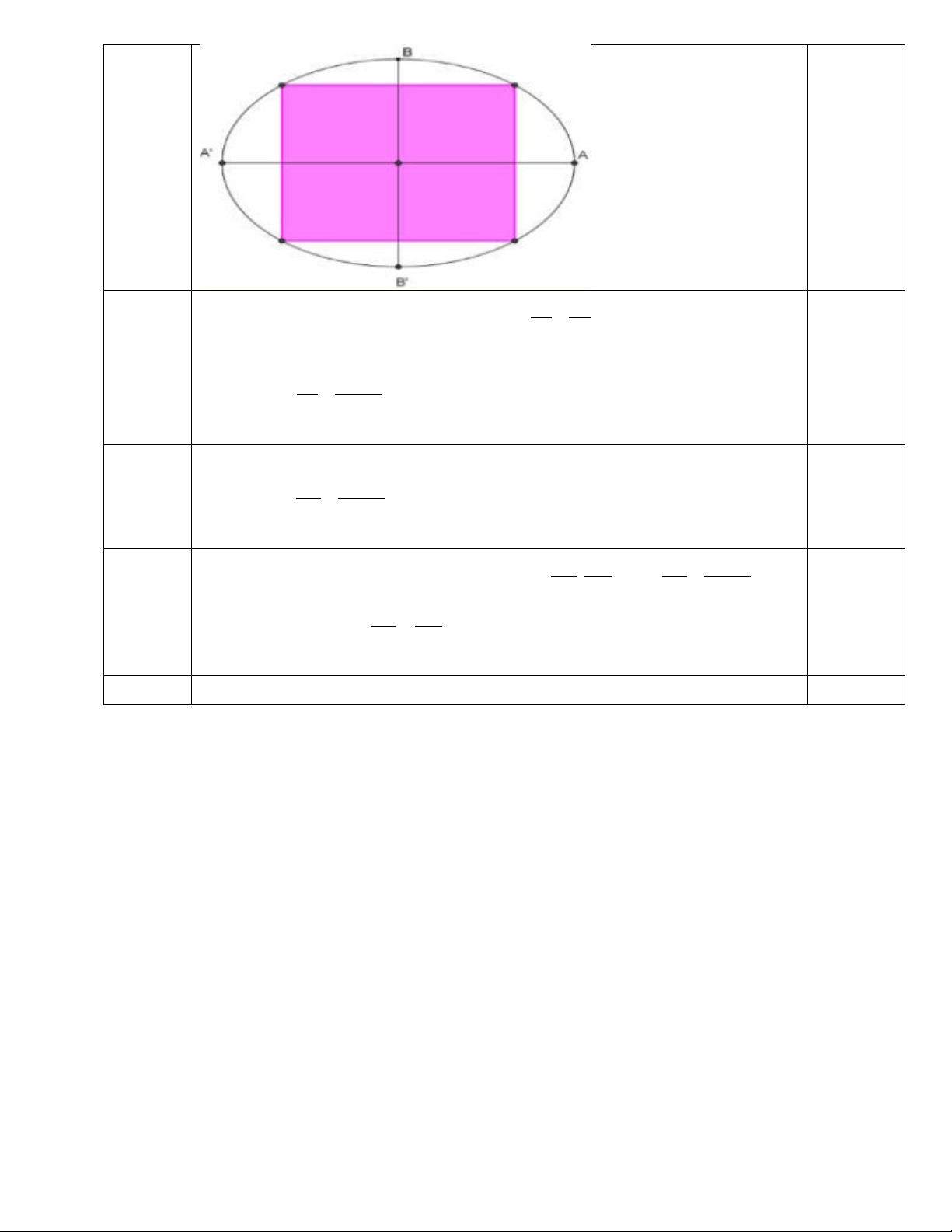 Chọn M (x ;y ) là điểm hình chữ nhật và x 0;y 0 . 0,5 M M M M 2 2 Ta có: (E) : x y M M + = 1. 36 20,25 2 2