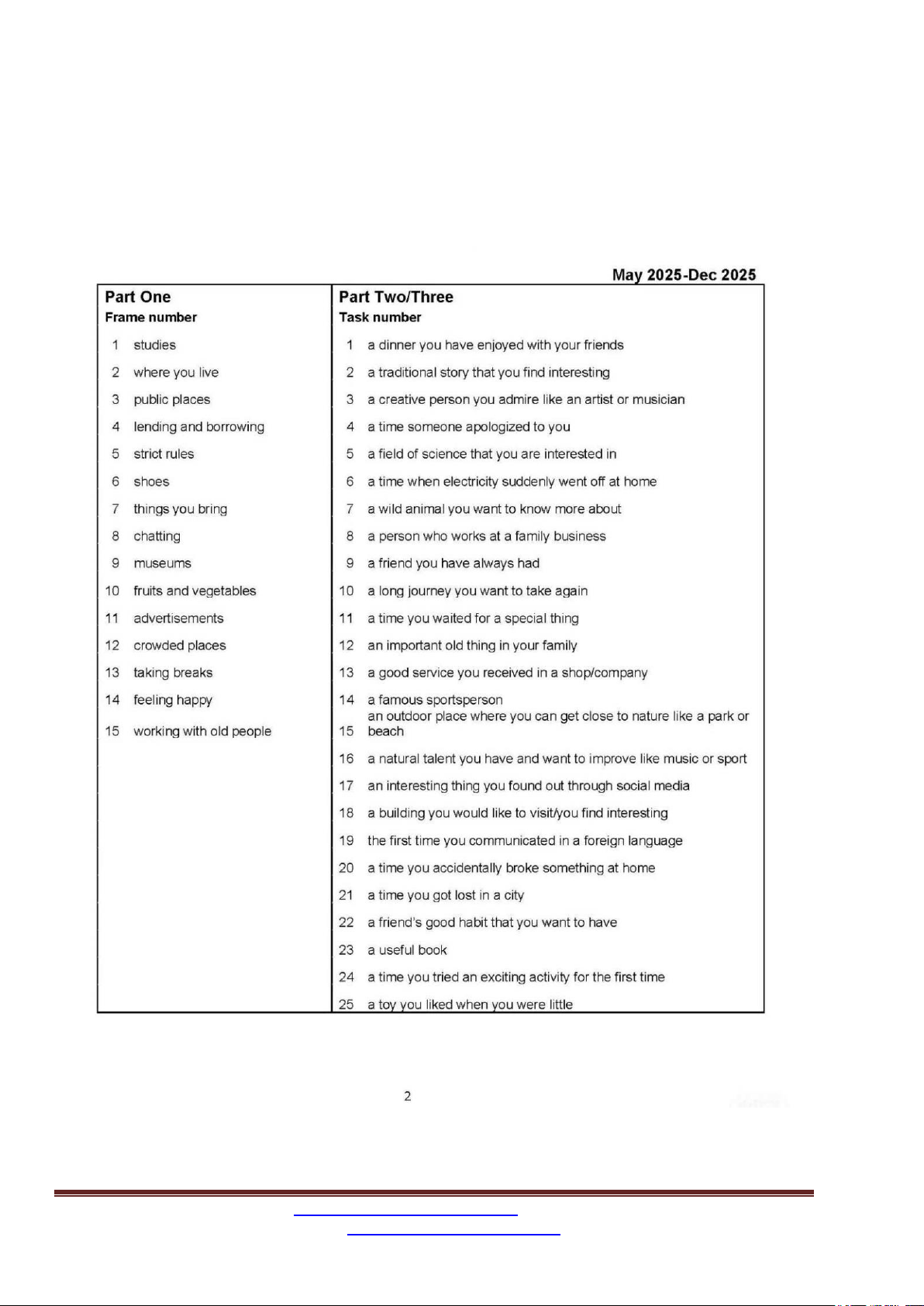 25. Describe an outdoor place where you can get close to nature ( e.g.park, beach..) You should say Where it is What people can do there How often do you go there?