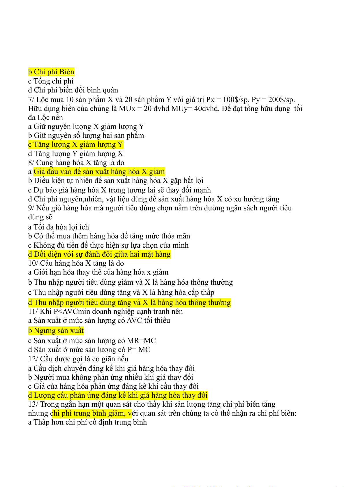 2/ Nếu một doanh nghiệp không sản xuất chi phí nào sau đây biến bằng 0 a Chi phí biến đổi b Tổng chi phí c Chi phí cố định d Chi phí cơ hội