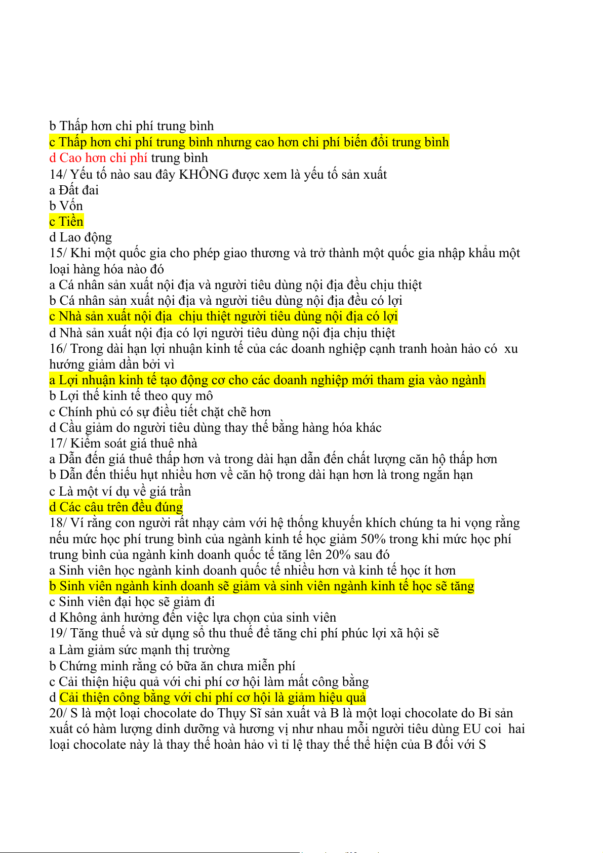 14/ Yếu tố nào sau đây KHÔNG được xem là yếu tố sản xuất a Đất đai b Vốn c Tiền d Lao động