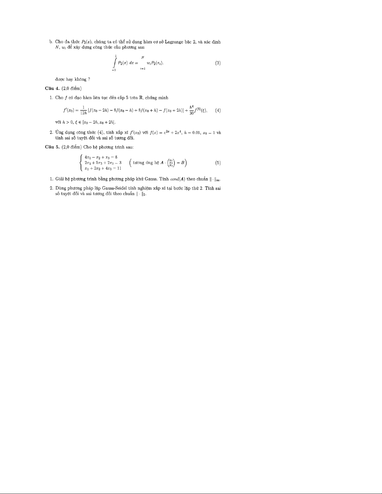 Ghi chú: Sinh viên được phép sử dụng tài liệu gồm giáo trình và tập viết của bản thân. Điểm tối đa là 10.