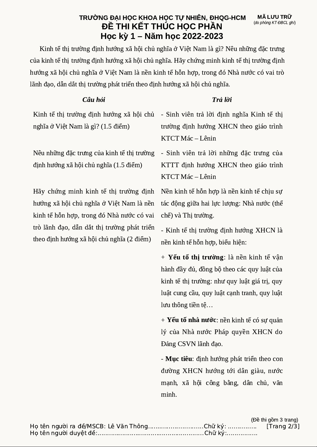 Họ tên người ra đề/MSCB: Lê Văn Thông.. ... ... .... ....... .....Chữ ký: ...... ....... [Trang 2/3]