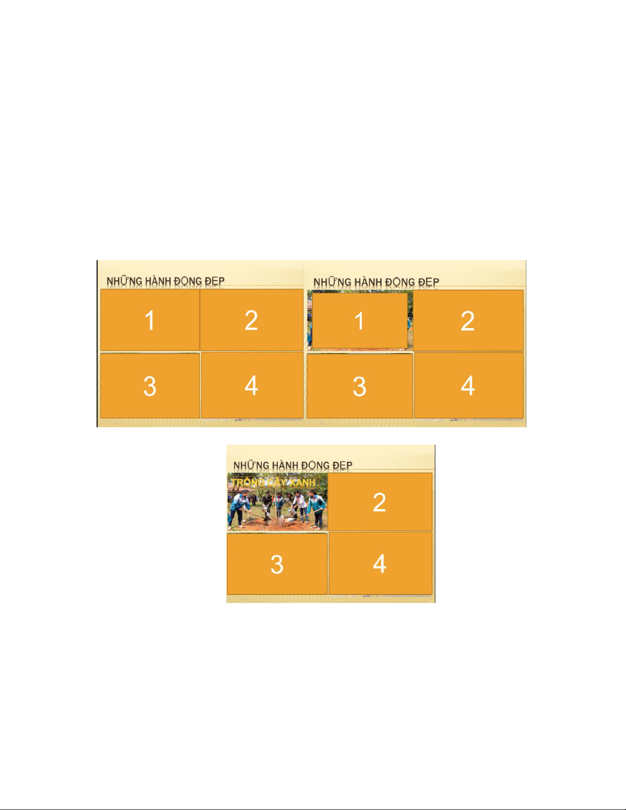 nội dung, tiêu đề xuất hiện cùng ảnh. Lưu ý: chọn và sắp xếp ảnh, tiêu đề phải phù hợp