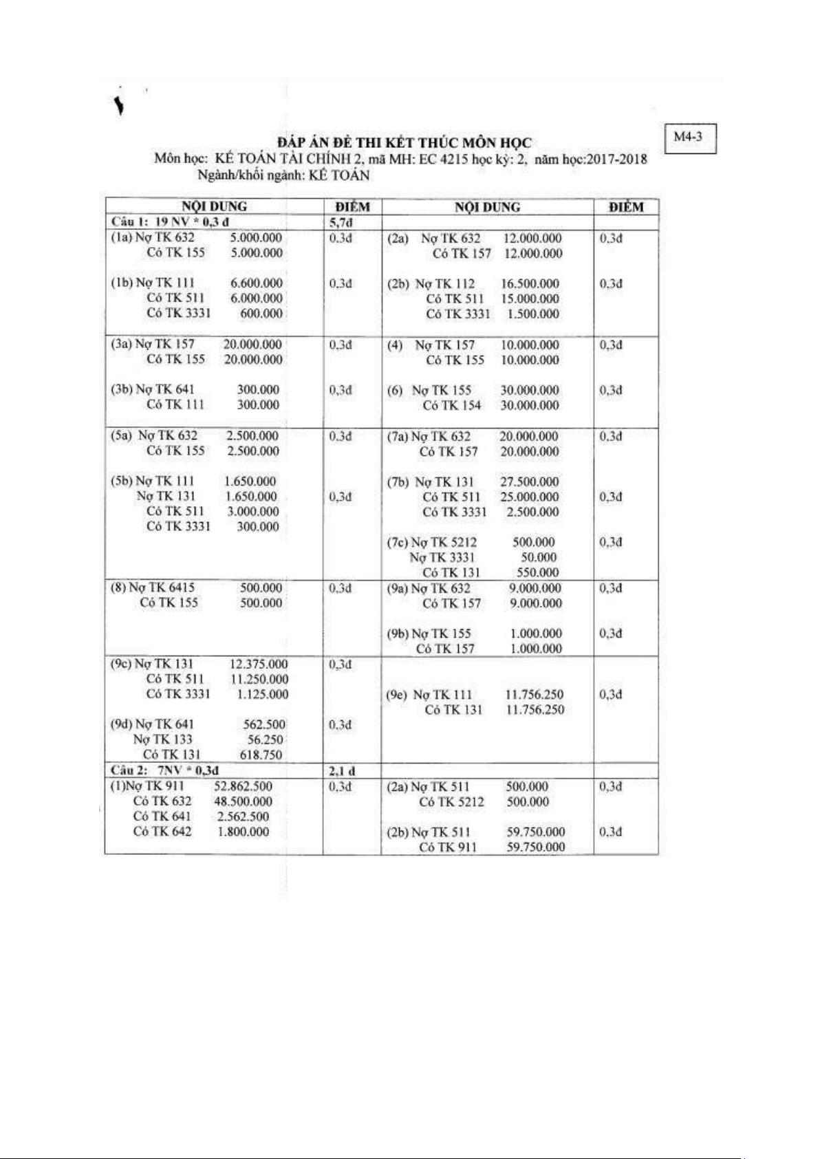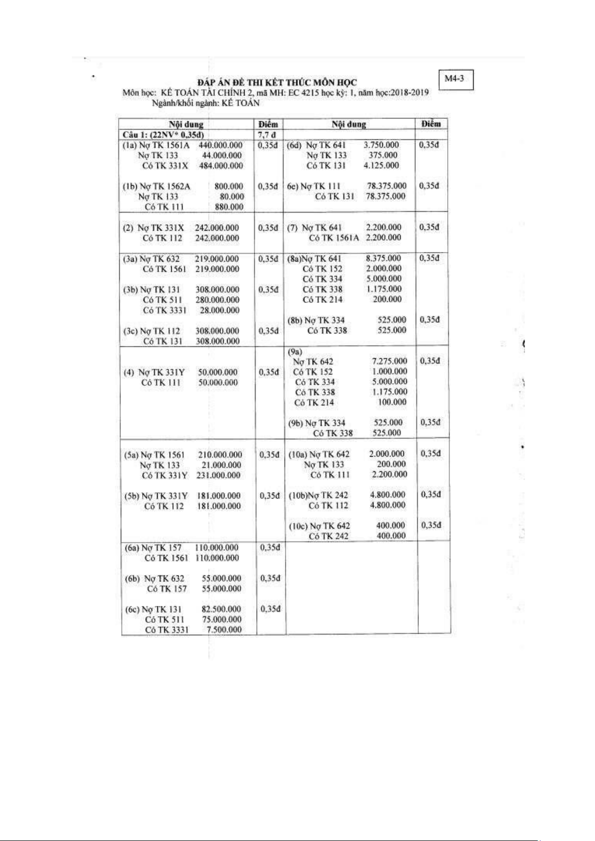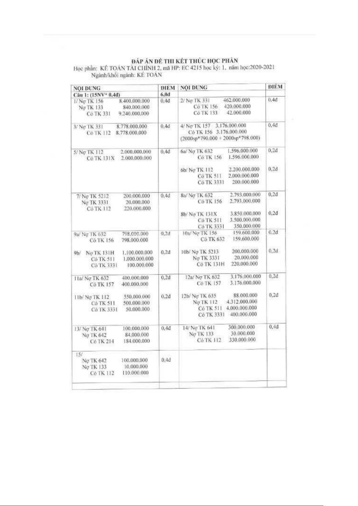 Tài liệu trắc nghiệm môn Kế toán tài chính 2 | Đại học Đồng Tháp