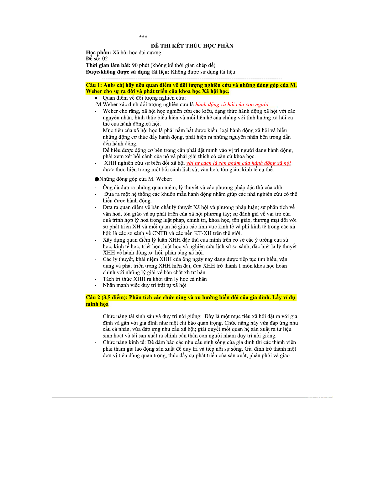 Đề thi kết thúc học phần Xã hội học đại cương - Đề số 01 và 02
