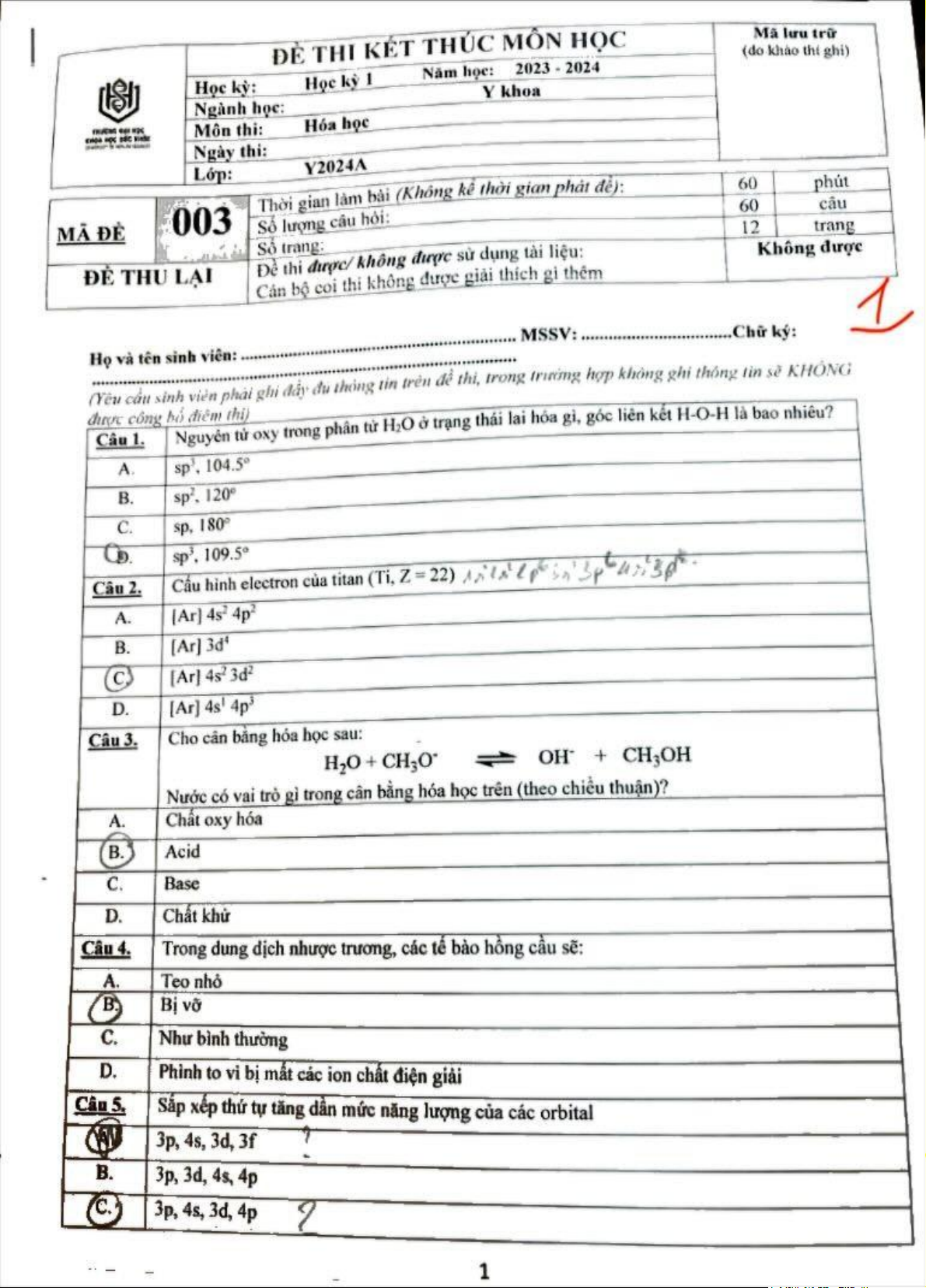 Nước có vai trò gì trong cân bằng hóa học? Trong dung dịch nhược trương, các tế bào hồng cầu sẽ. Sắp xếp thứ tự tăng dần mức năng lượng của các orbital. Phát biểu nào sau đây là đúng về phương pháp chuẩn độ acid base. Cấu hình electron nào sau đây vi phạm nguyên lý Pauli? Tài liệu giúp bạn tham khảo, ôn tập và đạt kết quả cao. Mời đọc đón xem!