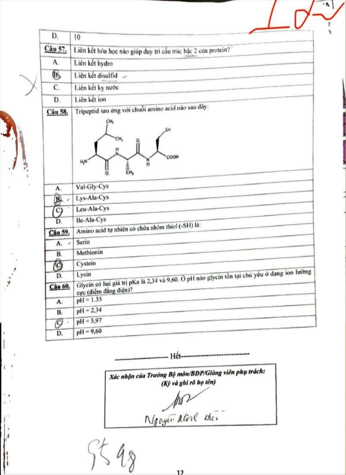 Đề cuối kì hóa sinh y | Đại học Y Dược Thành phố Hồ Chí Minh