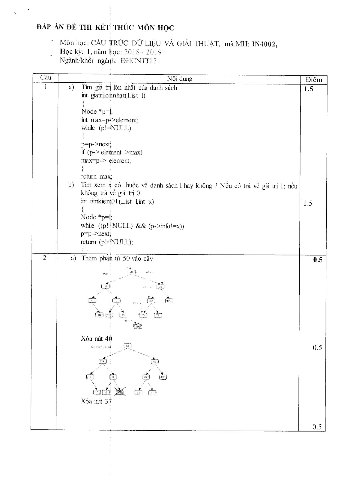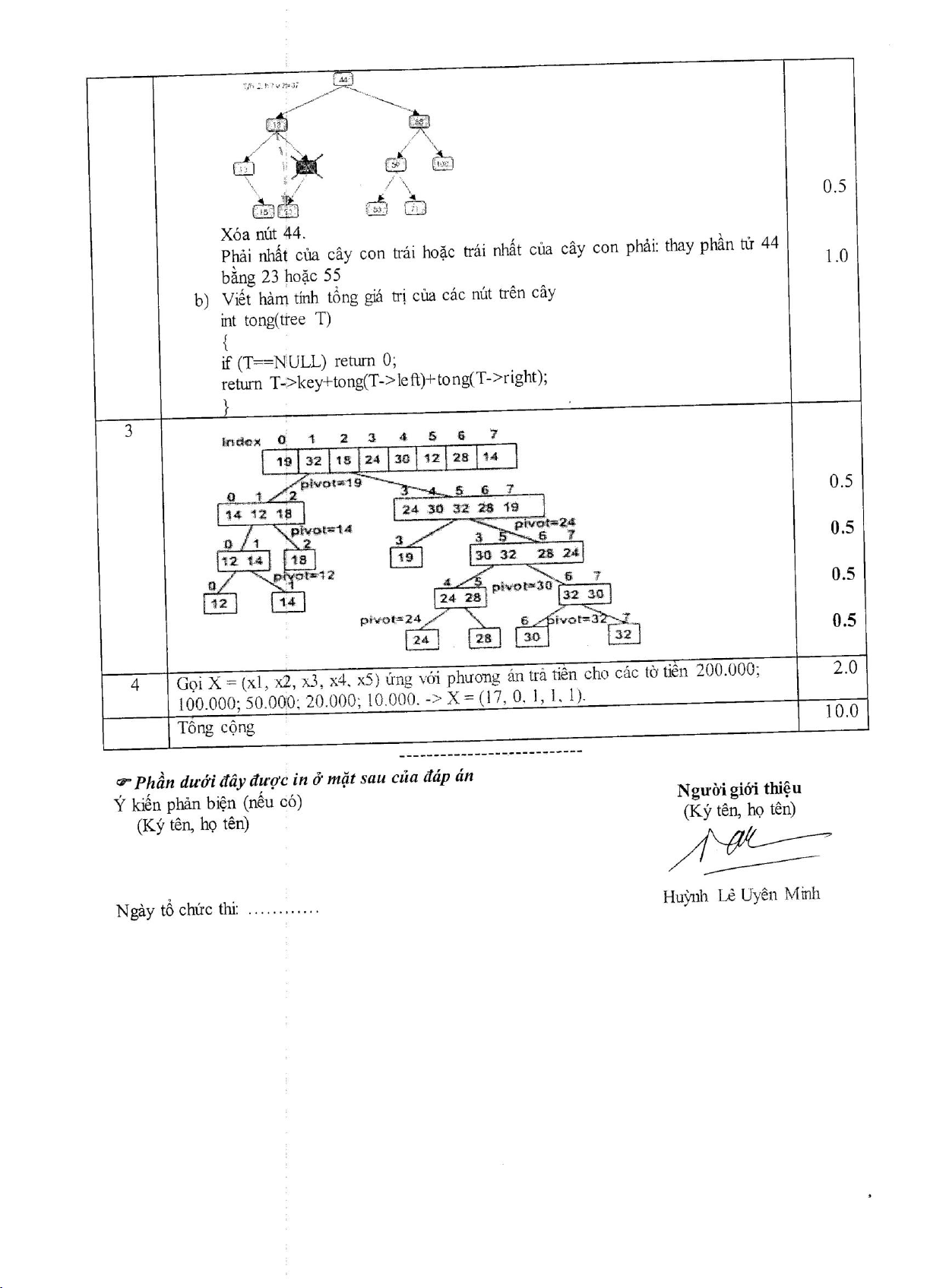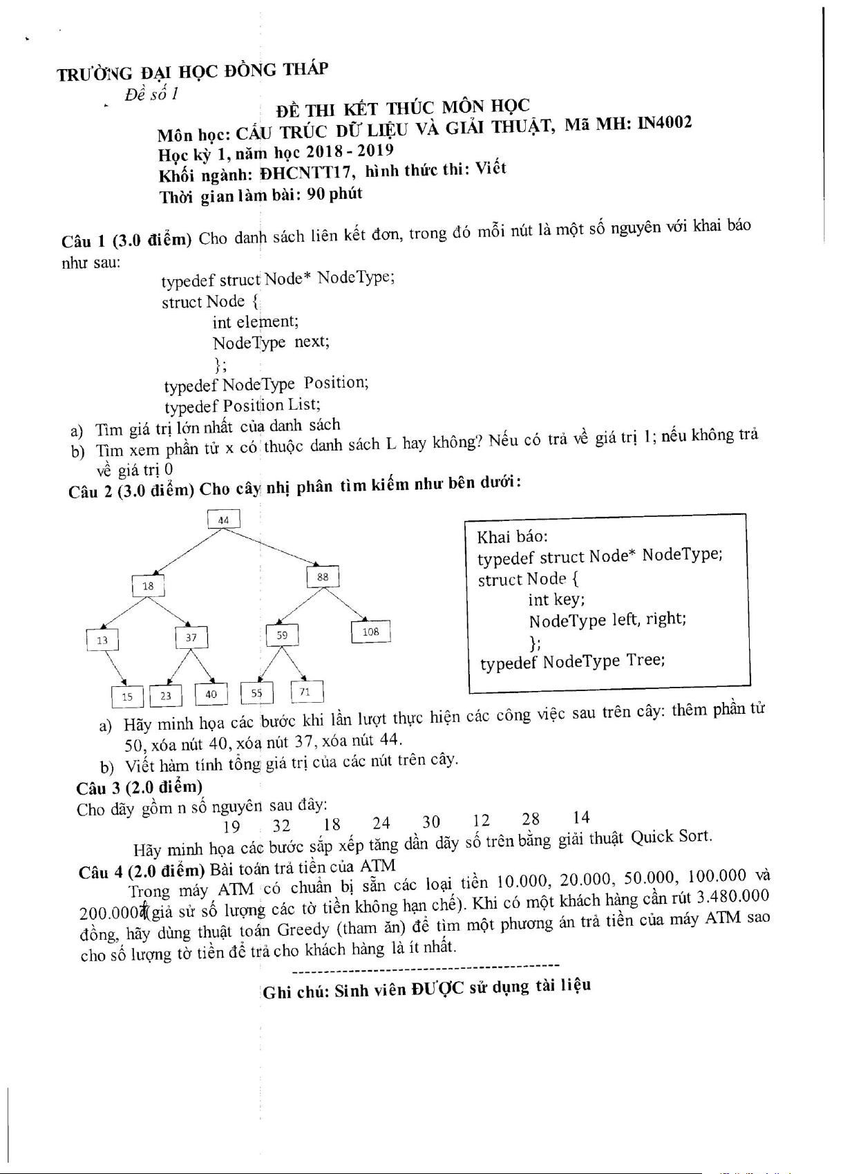 Đề thi kết thúc môn học môn Cấu trúc dữ liệu và giải thuật | Đại học Đồng Tháp