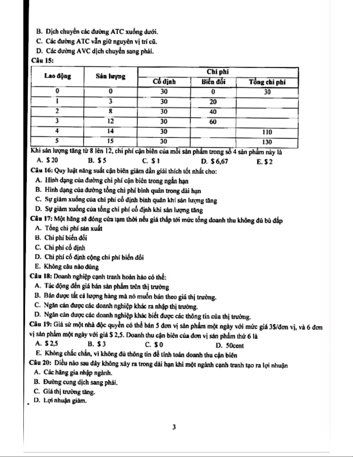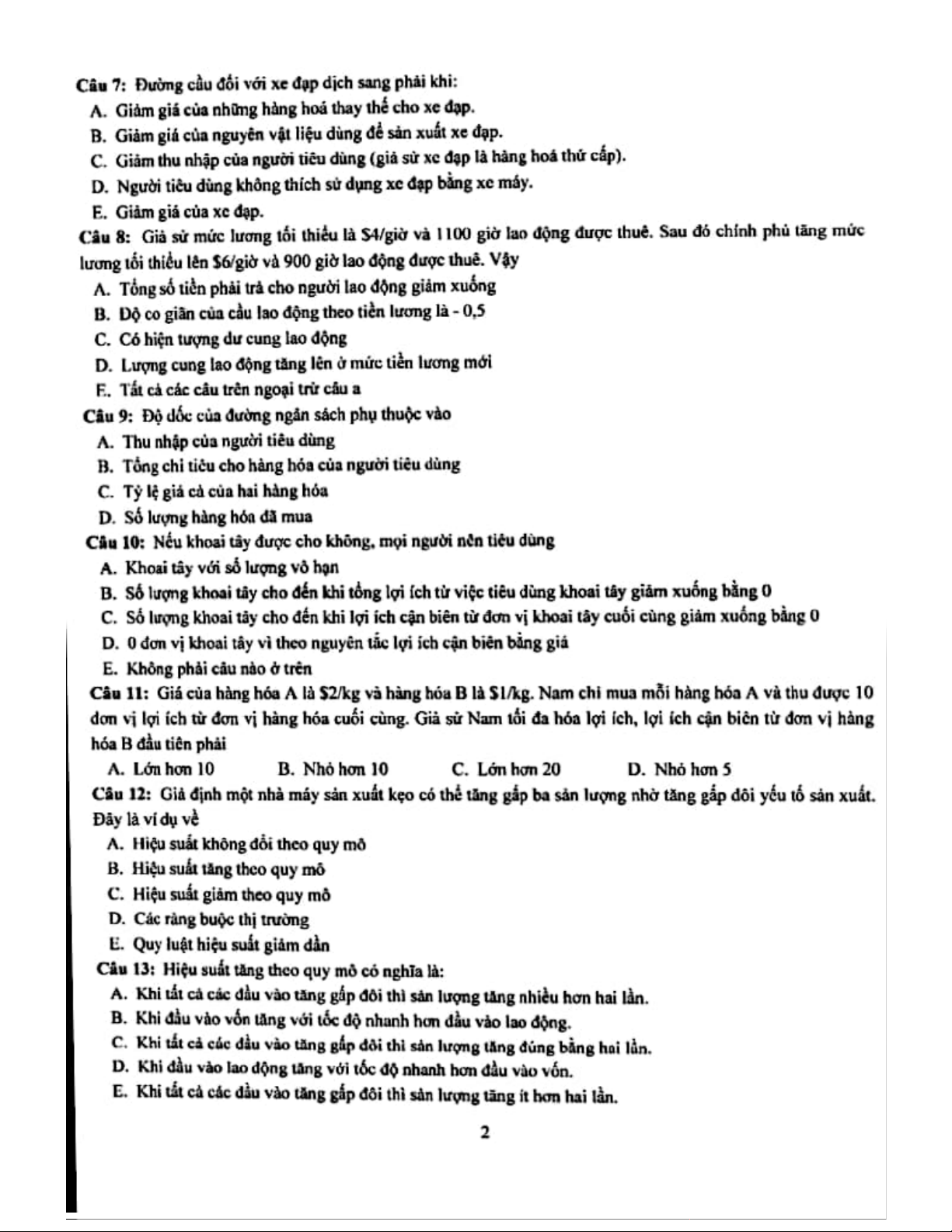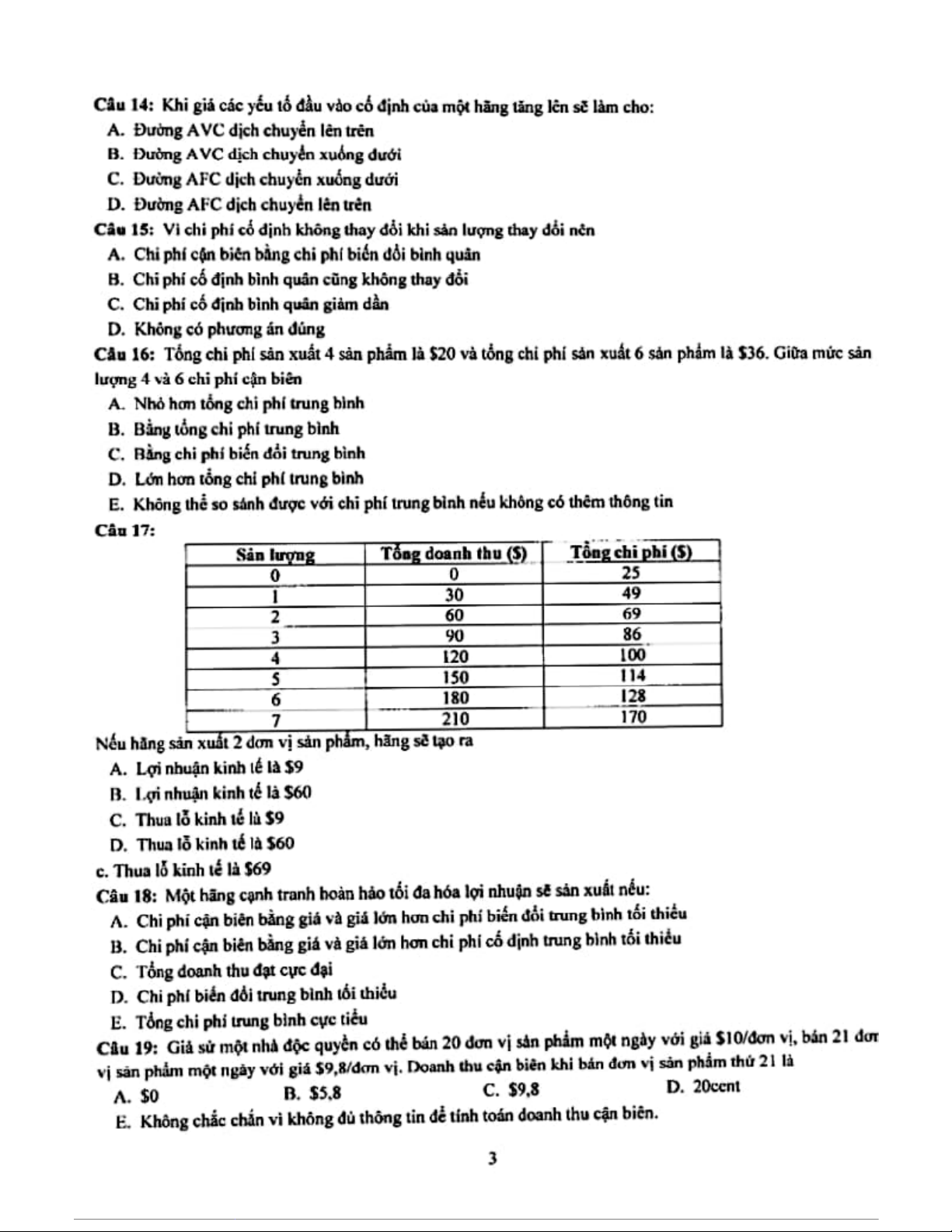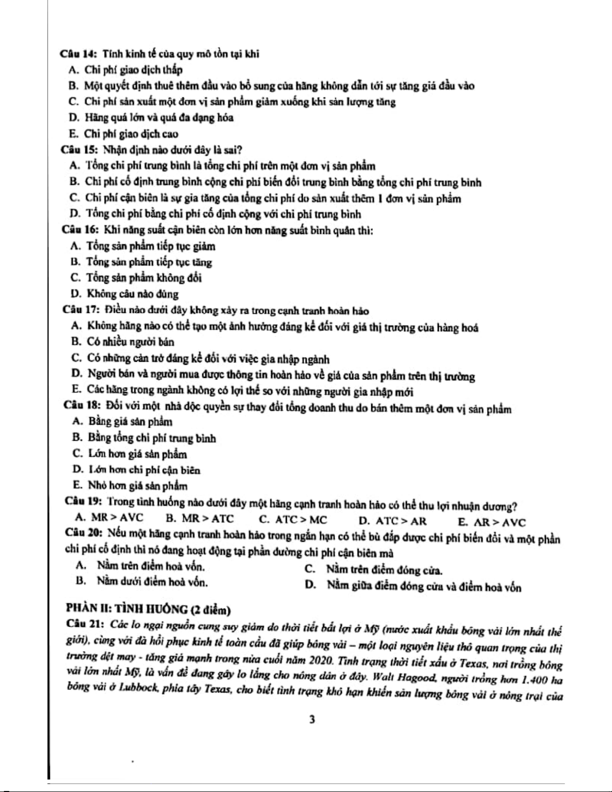 Đề thi kết thúc môn Kinh tế vi mô | Học viện Ngân hàng