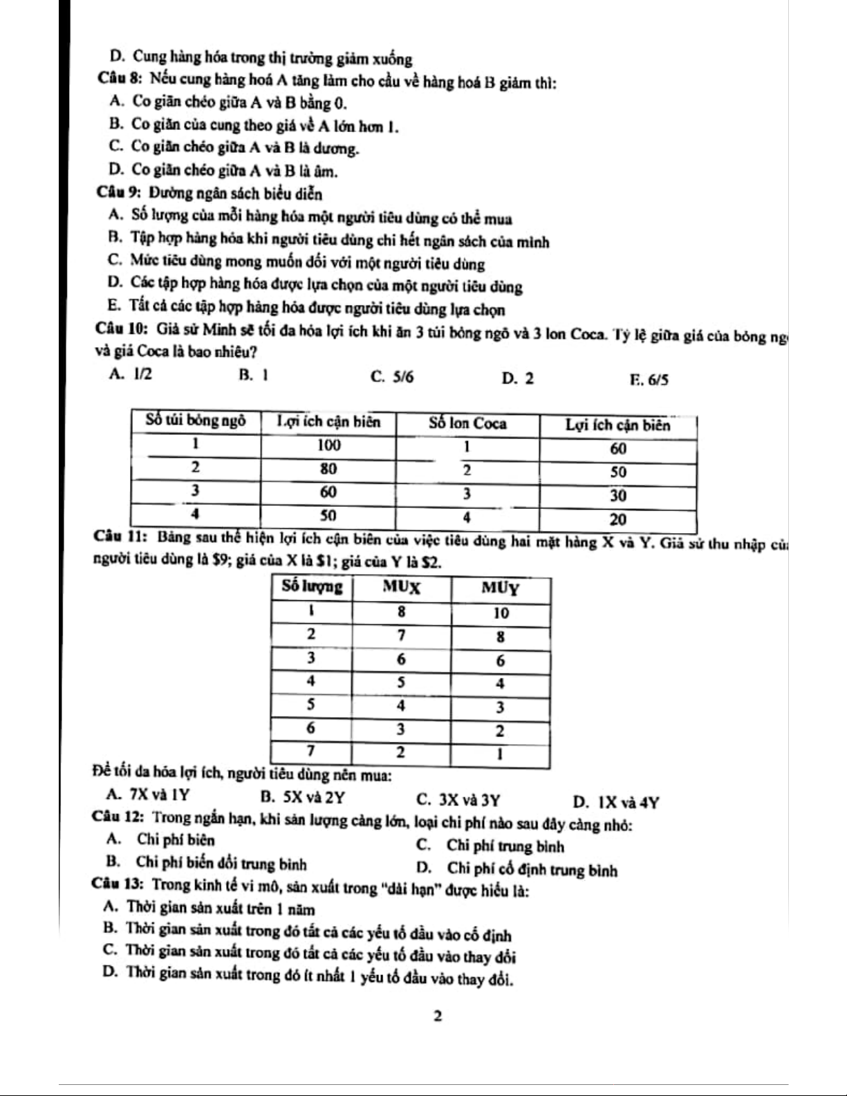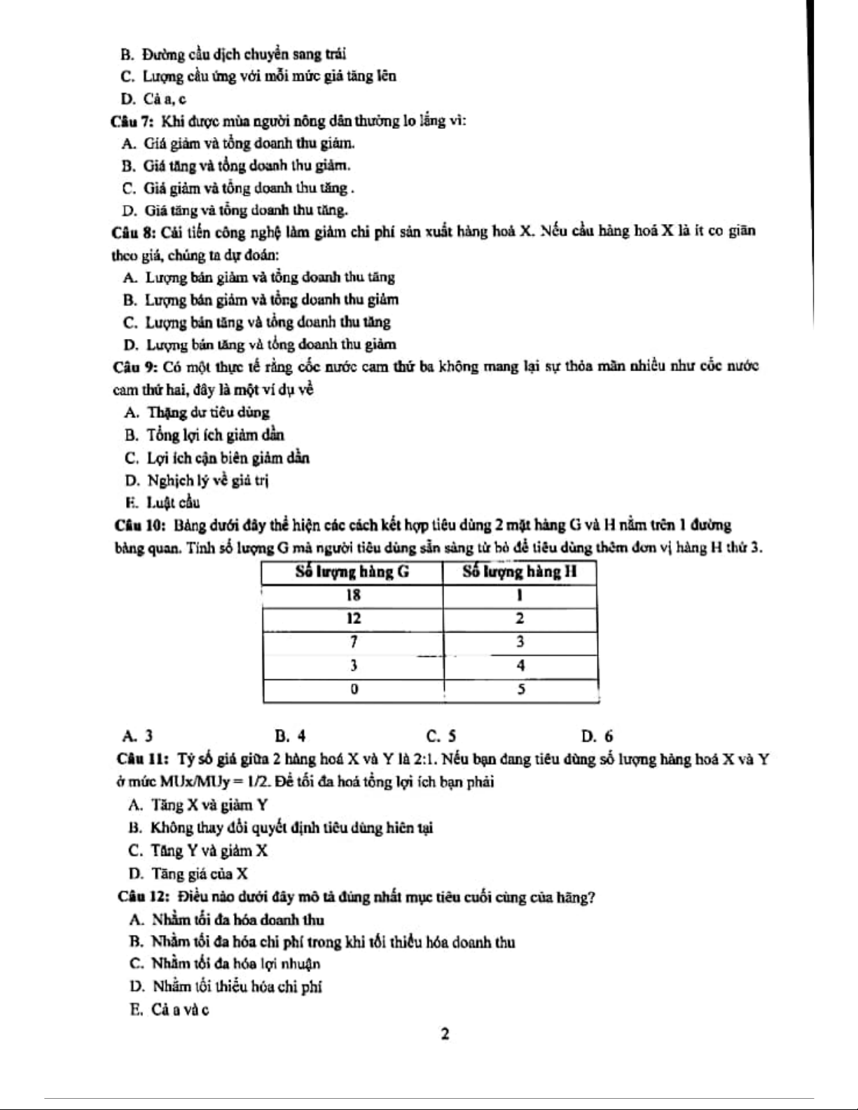Bài tập Chương 2: Câu hỏi trắc nghiệm và nhận định môn Kinh tế vi mô | Học viện Ngân hàng