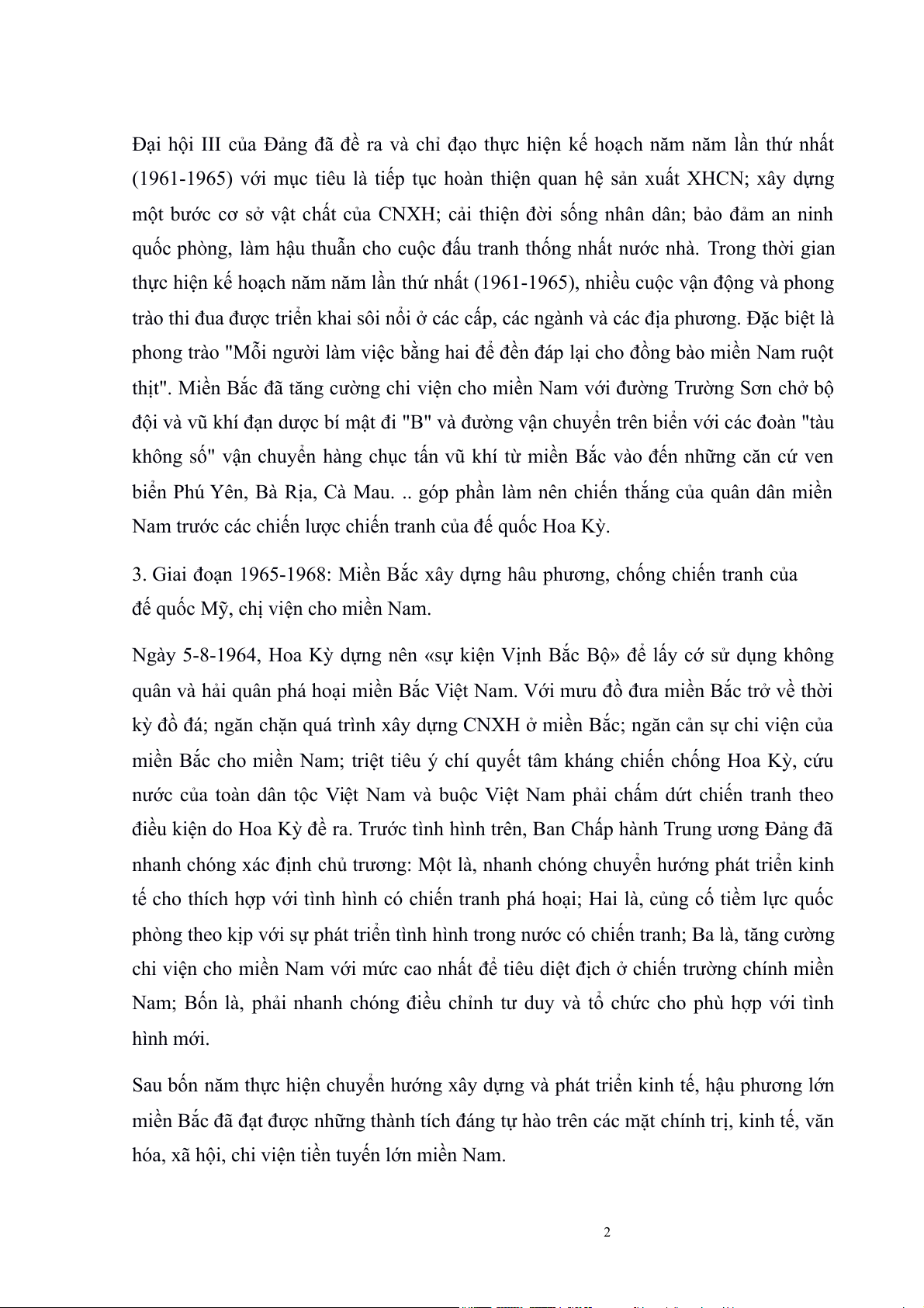 2. Giai đoạn 1961-1965:: Đại hội III của Đảng đã thông qua báo cáo về kế hoạch 5