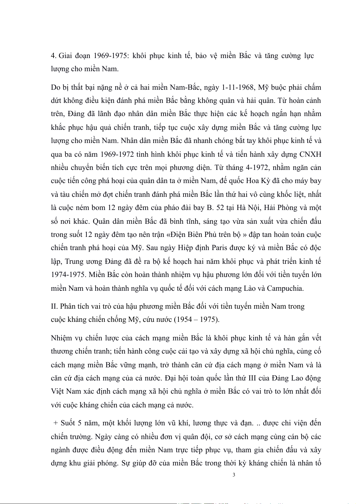 4. Giai đoạn 1969-1975: khôi phục kinh tế, bảo vệ miền Bắc và tăng cường lực lượng cho miền Nam.