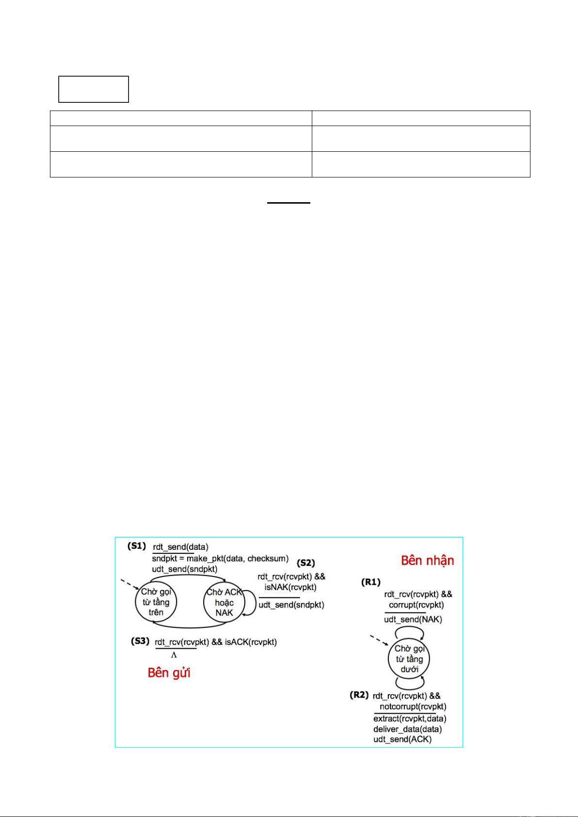Câu 28: Hãy cho biết sơ đồ sau đây biểu diễn Nguyên lý truyền tin cậy nào? A. Rdt 2.2 B. Rdt 3.0 C. Rdt 1.0 D. Rdt 2.1