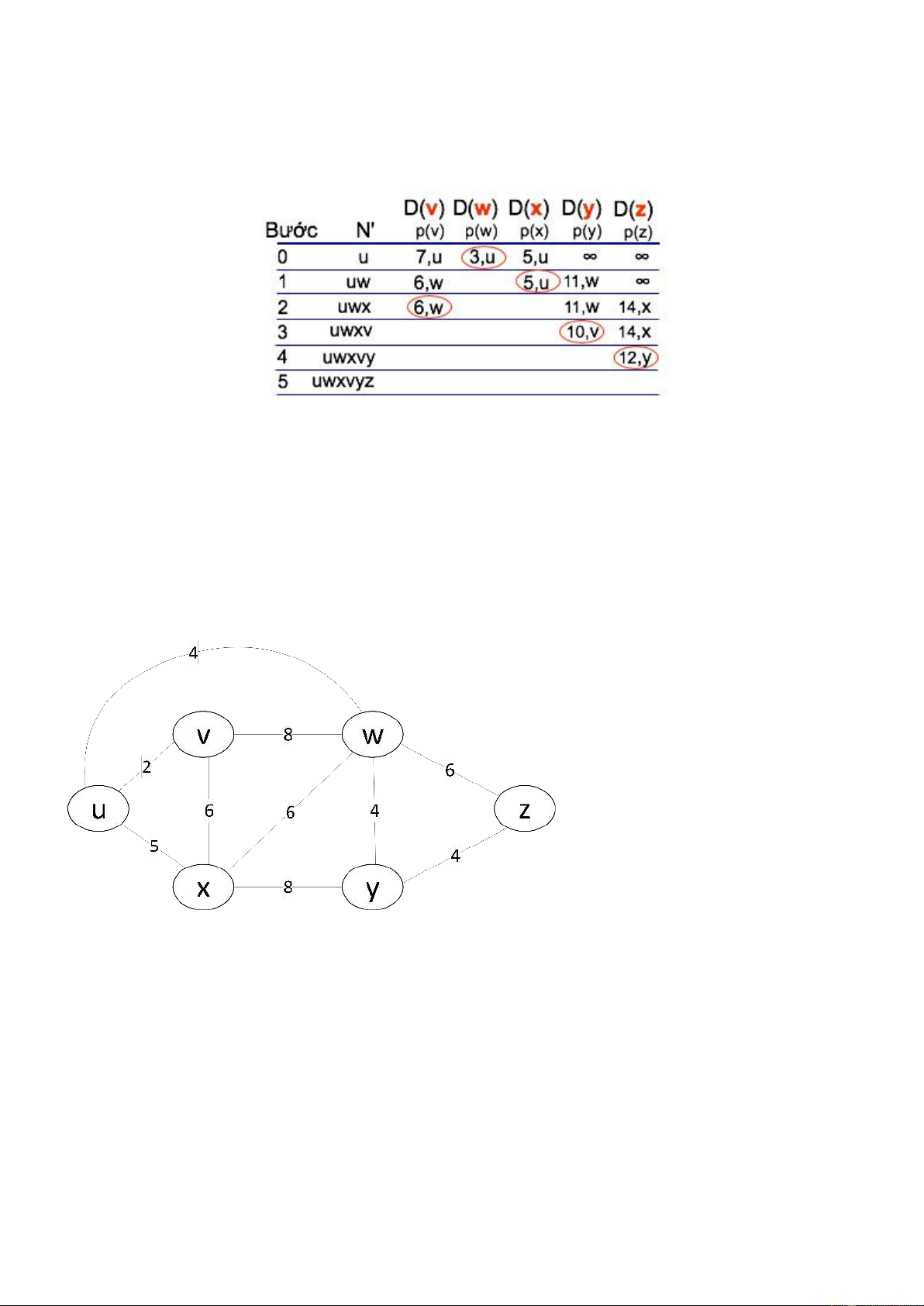 dưới. Dùng thuật toán Dijkstra để xác định đường đi ngắn nhất từ đỉnh u đến các đỉnh còn lại.