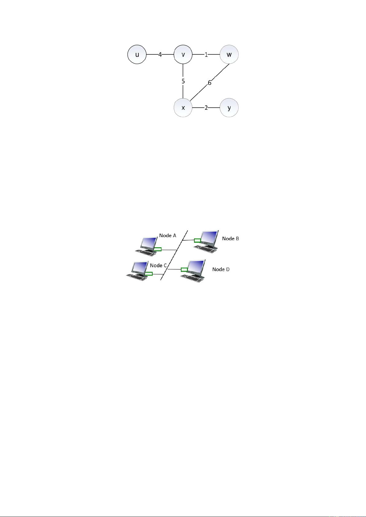 Câu 38: Hãy xác định distance vector ban đầu của node w, dw(u,v,x,w,y)? A. (5,1,6,0,∞) B. (5,1,6,0,8) C. (∞,1,6,0,8) D. (∞,1,6,0,∞)