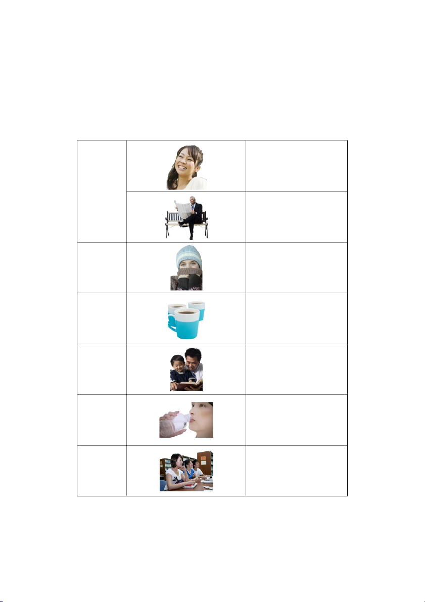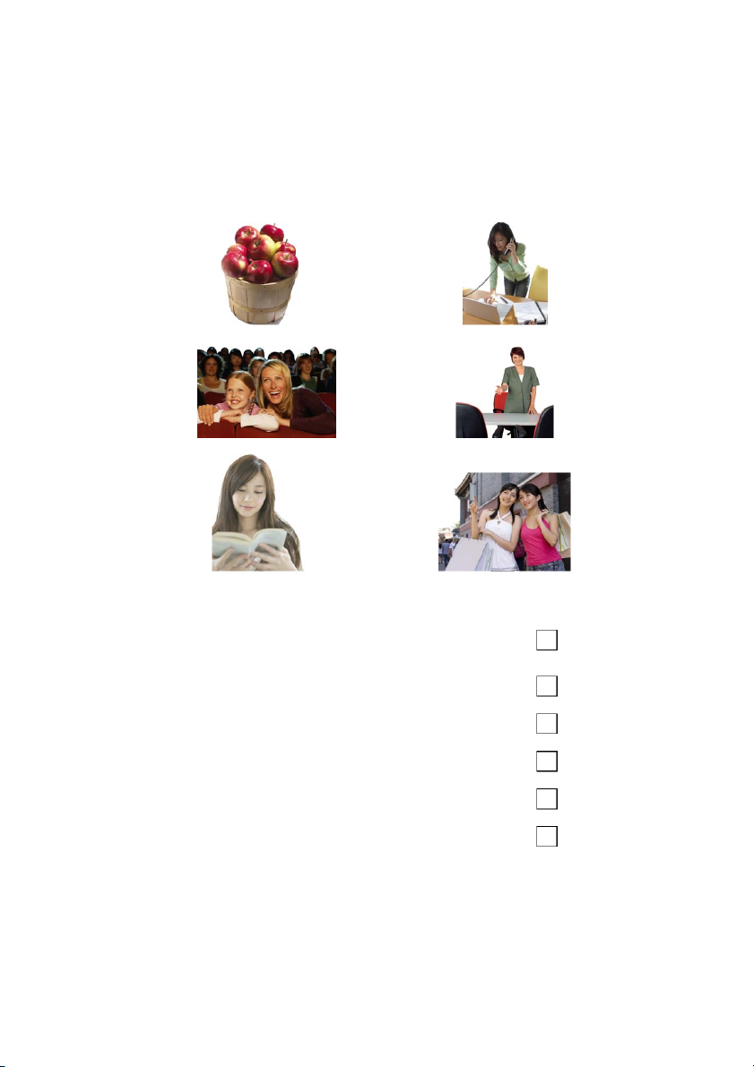 A 商店 √ B 医院 C 学校 gǒu māo māo hé gǒu 16. A 狗 B 猫 C 猫 和 狗 nián nián 17. A 0 B 6 年 C 7 年 zhuōzi shang yǐzi shang diànnǎo hòumiàn 18. A 桌子 上 B 椅子 上 C 电脑 后面 shàngwǔ míngtiān xià ge yuè 19. A 上午 B 明天 C 下 个 月 suì suì suì 20. A 8 岁 B 20 岁 C 40岁 H11003 - 5 二、 二 阅 、 读 第 一 部 分 第 21-25 题 diànshì 电视 × 例如: fēijī 飞机 √ tīng 21. 听 mǐfàn 22. 米饭 gāoxìng 23. 高兴 jiǔ diǎn 24. 九 点 xuéxí 25. 学习 H11003 - 6 第 二 部 分 第 26-30 题 A B C D E F