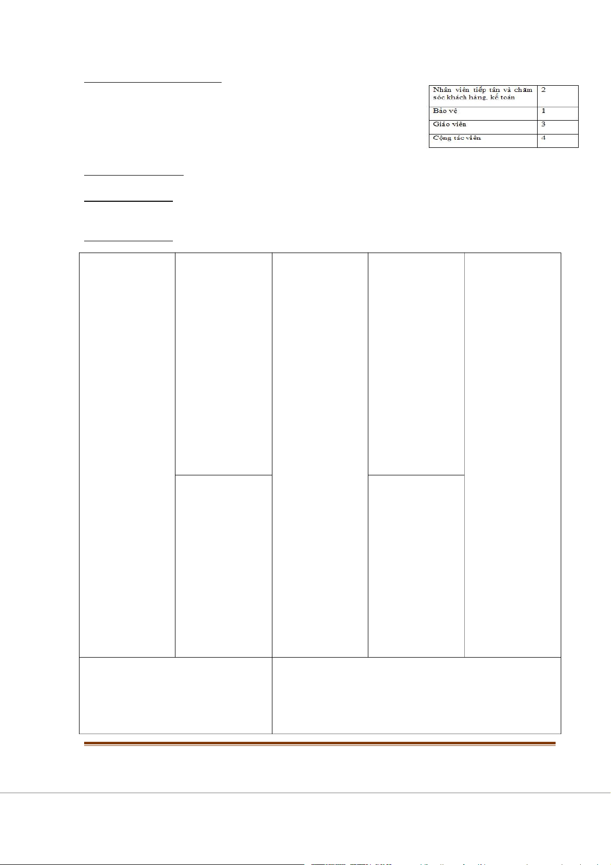 Nhân viên tiếp tân và chăm sóc 2 30.000.000 khách hàng, kế toán Bảo vệ 1 5.000.000 5.000.000 Giáo viên 3 15.000.000 45.000.000 Cộng tác viên 4 500.000 2.000.000 Quảng cáo và xúc tiến 10.000.000 bán hàng dịch vụ