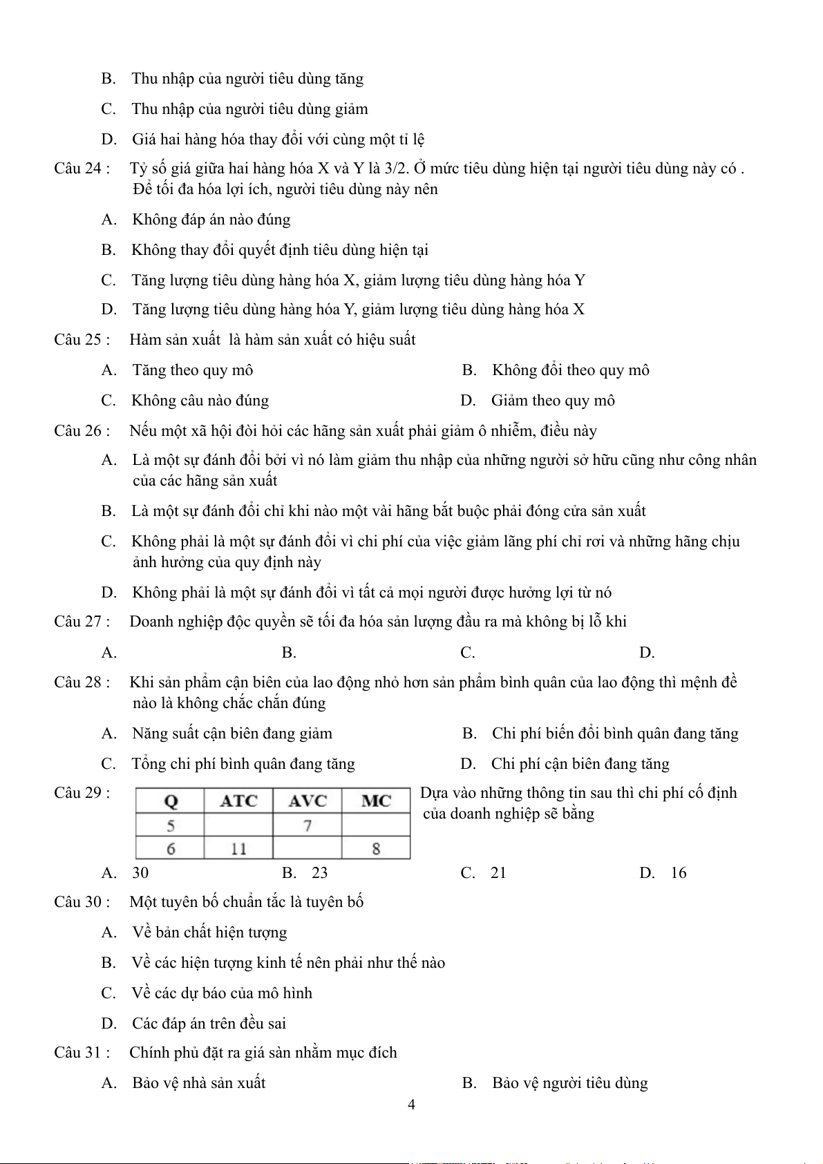 D. Chi phí cận biên đang tăng Câu 29 :
