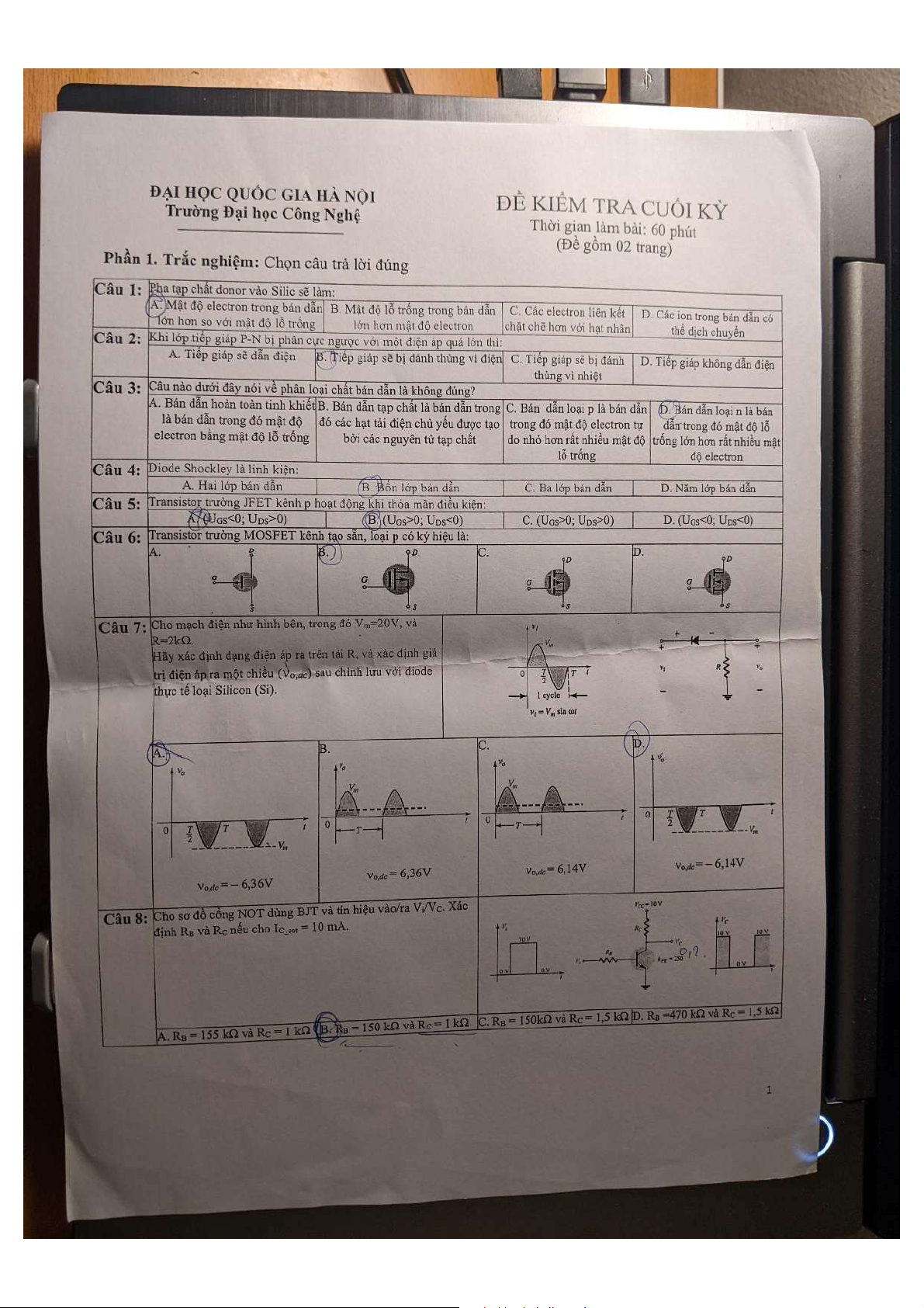 Đề thi Kỳ 2 Linh kiện Bán dẫn & Vi mạch UET 2022-2023. Môn