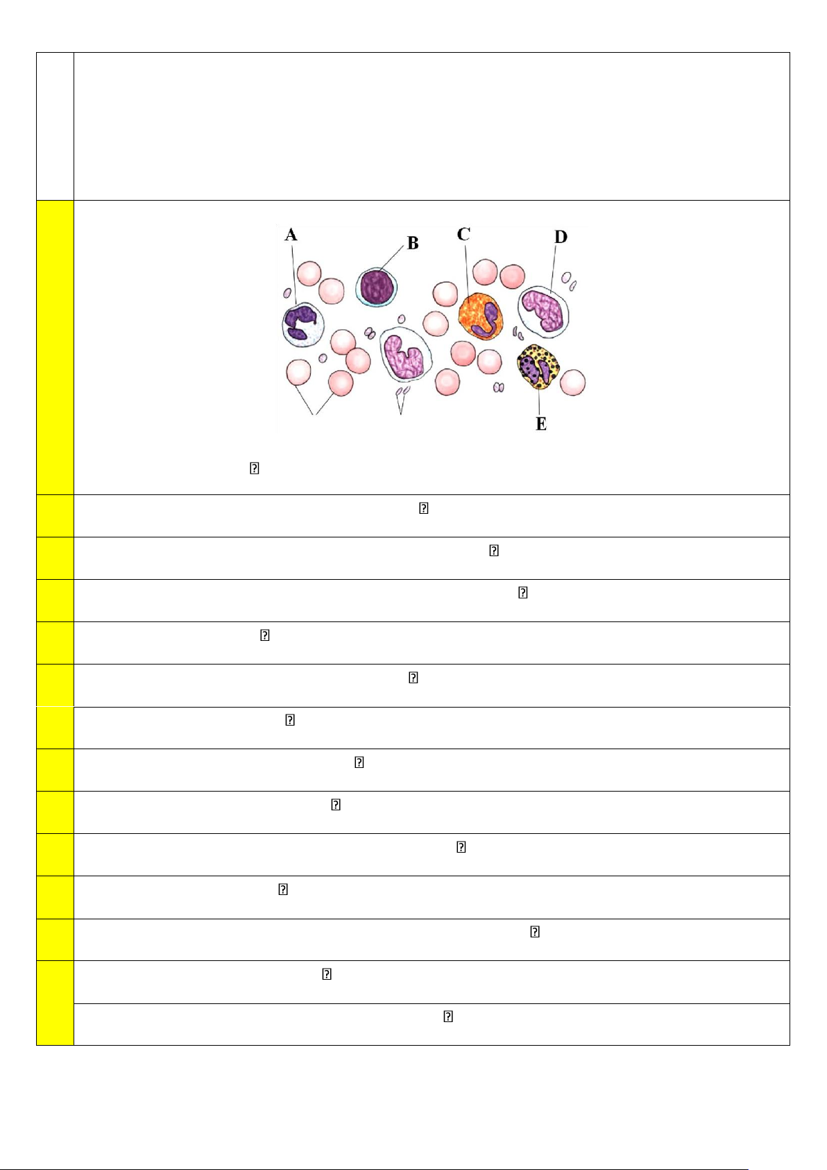 C. Bạch cầu đa nhân trung tính D. Lympho bào E. Bạch cầu ưa base lOMoAR cPSD| 47207367 8.
