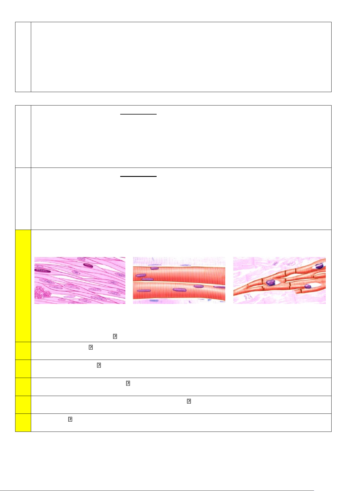 Mô nào trong cơ thể là mô có chứa mạch máu để nuôi bản thân và các mô khác: A. Biểu mô B. Mô liên kết C. Mô cơ D. Mô thần kinh E. B và C đều đúng lOMoAR cPSD| 47207367 5.