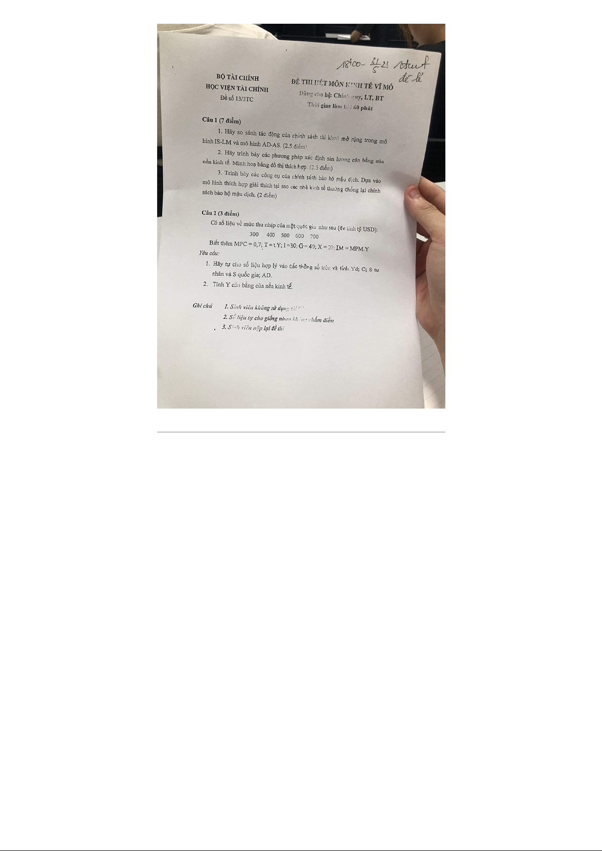 Đề thi môn Kinh tế vĩ mô | Học viện Tài chính