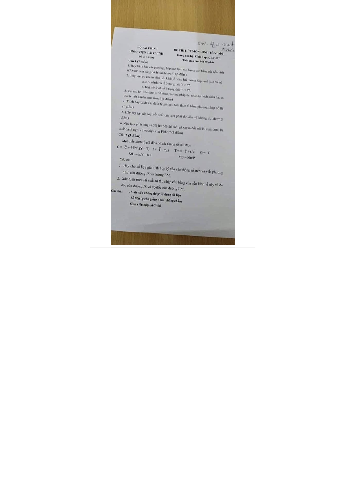 Đề thi môn Kinh tế vĩ mô | Học viện Tài chính. Tài liệu giúp bạn tham khảo, ôn tập và đạt kết quả cao. Mời đọc đón xem!
