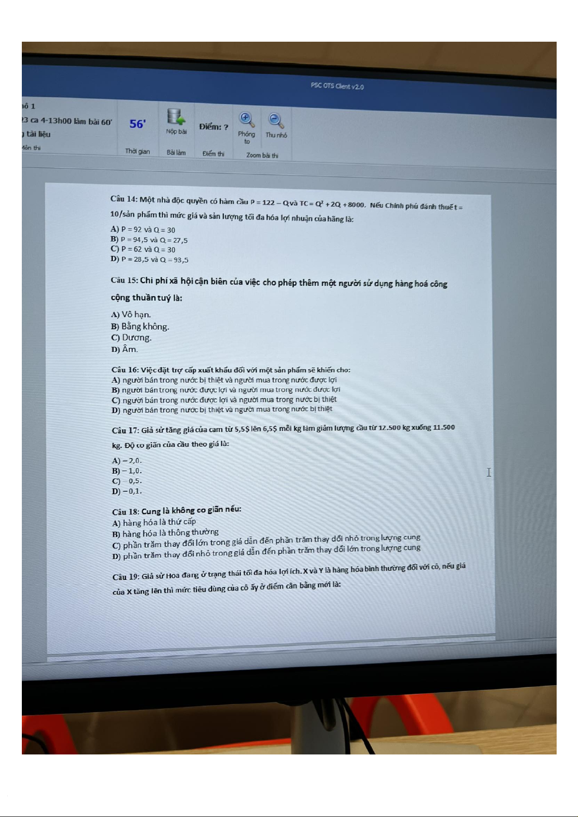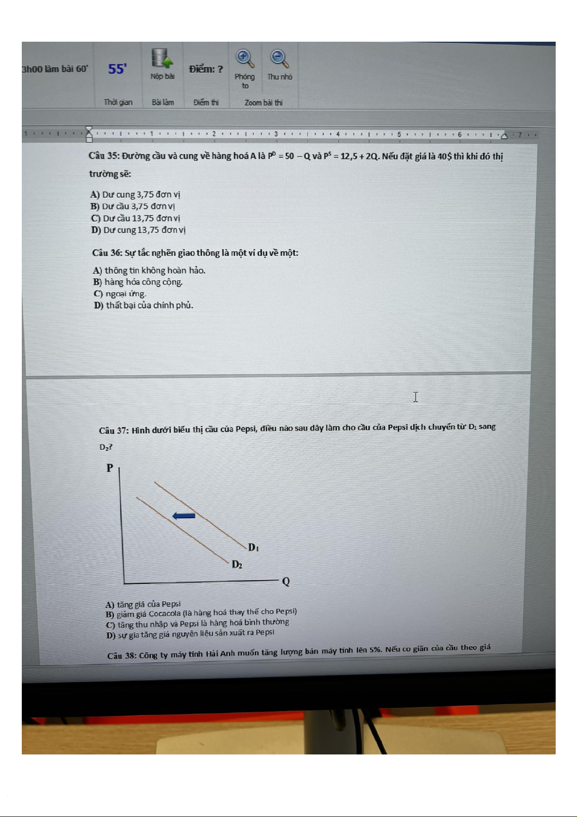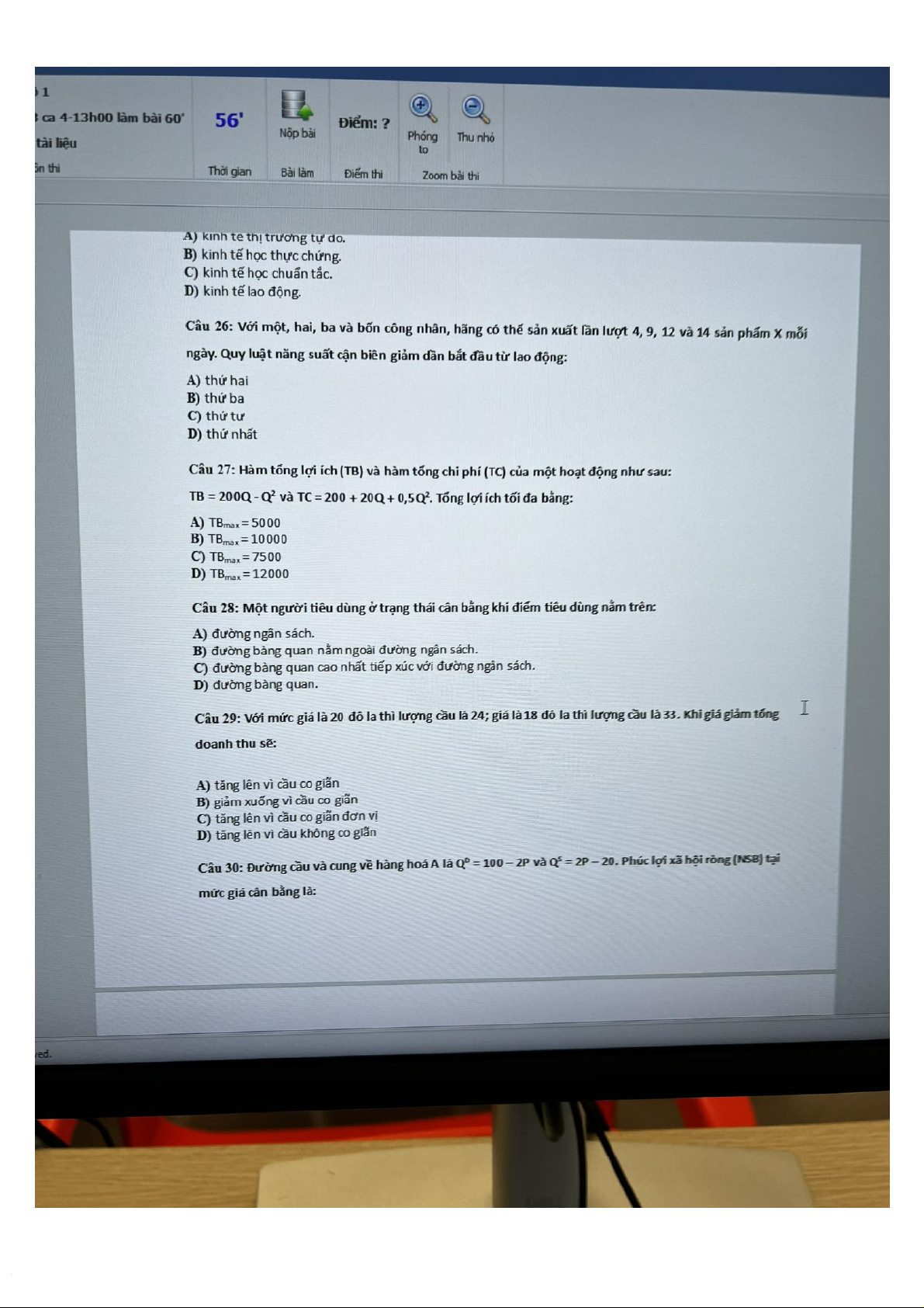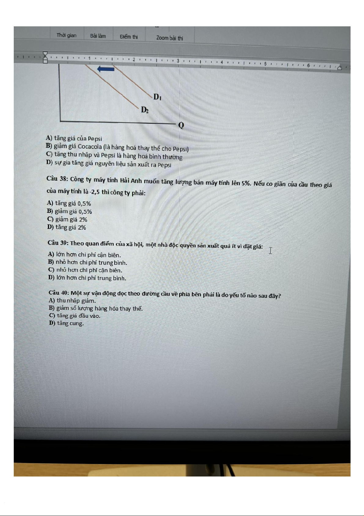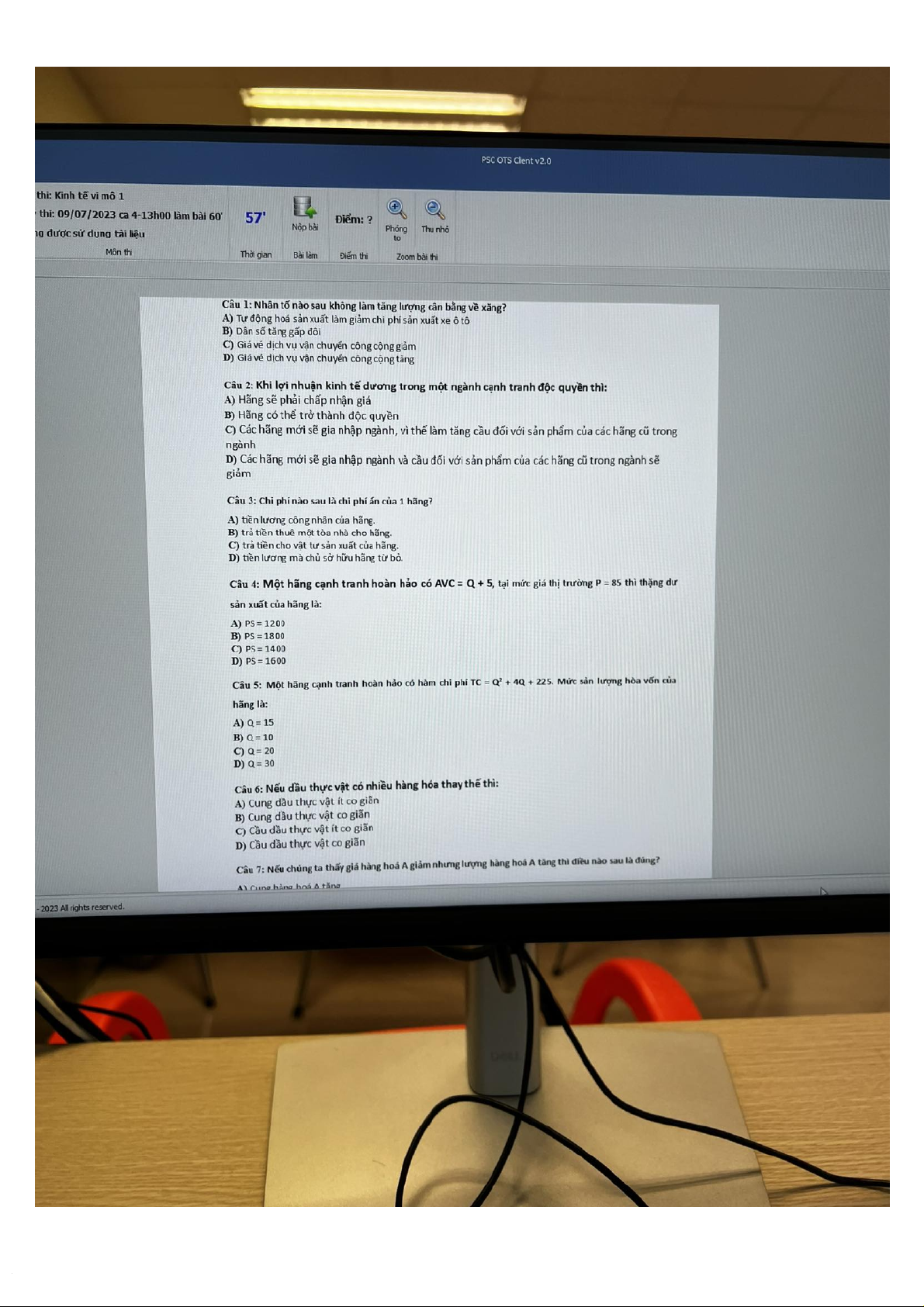 Đề thi môn Kinh tế vi mô | Trường Đại học Kinh Tế Quốc Dân