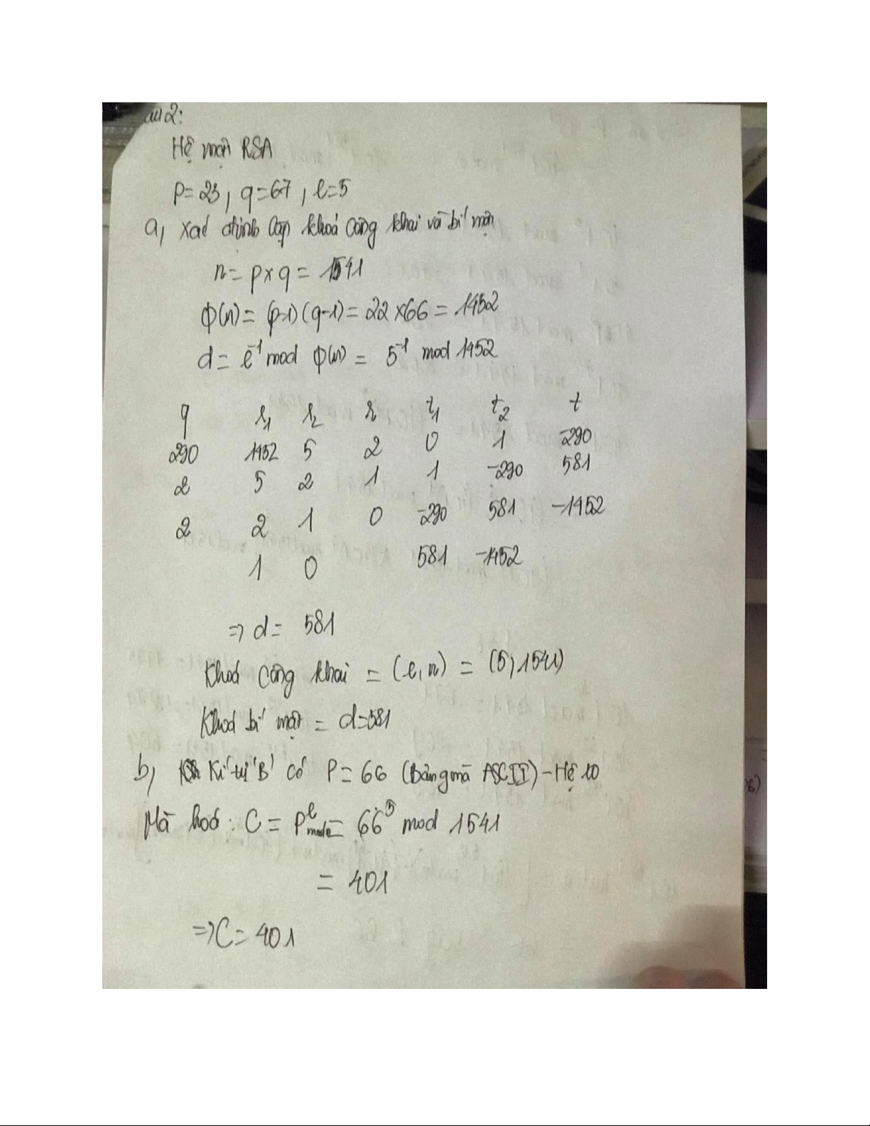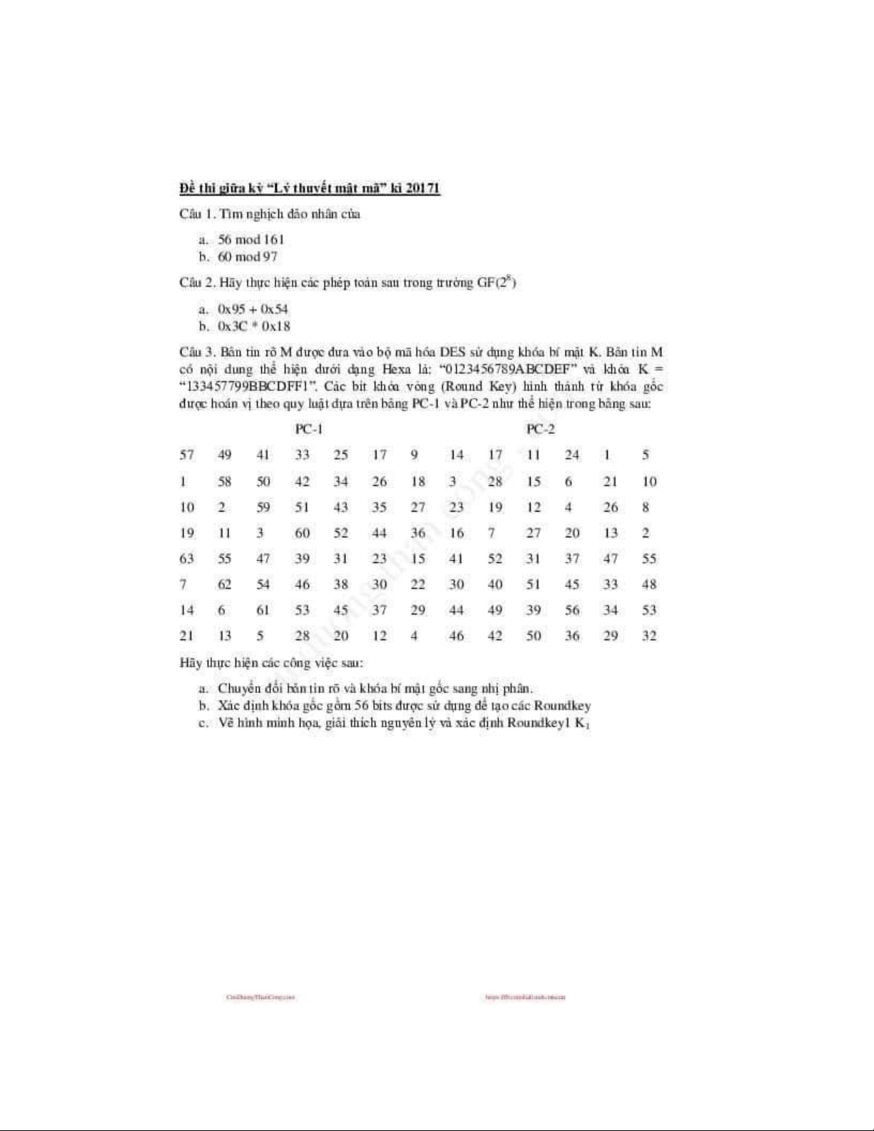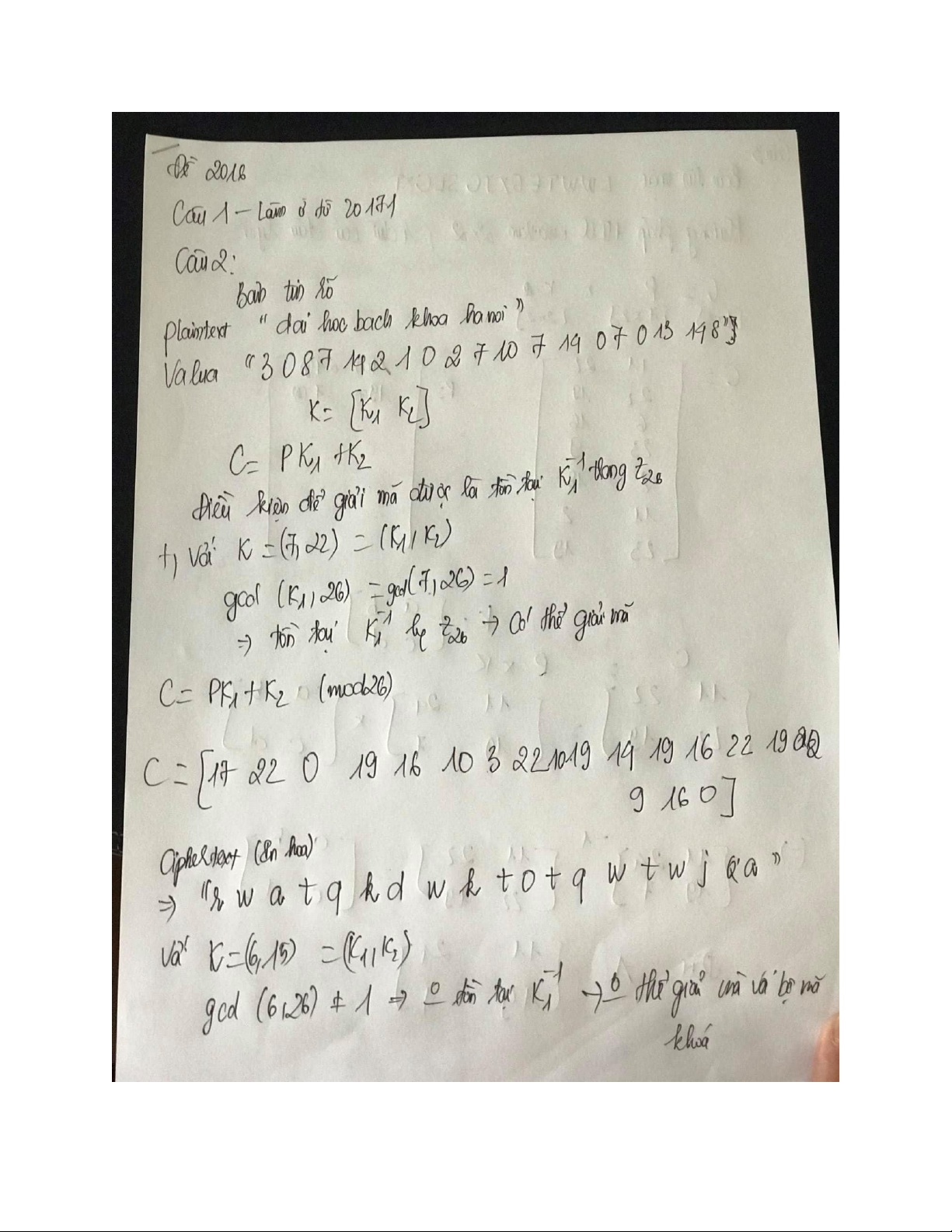 Giải đề Môn Lý thuyết mật mã | Đại học Bách Khoa Hà Nội