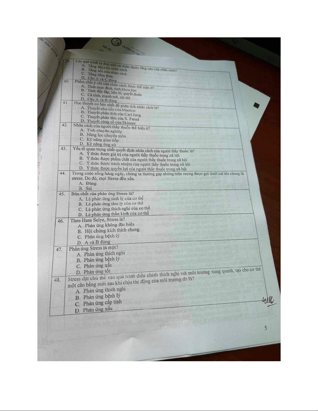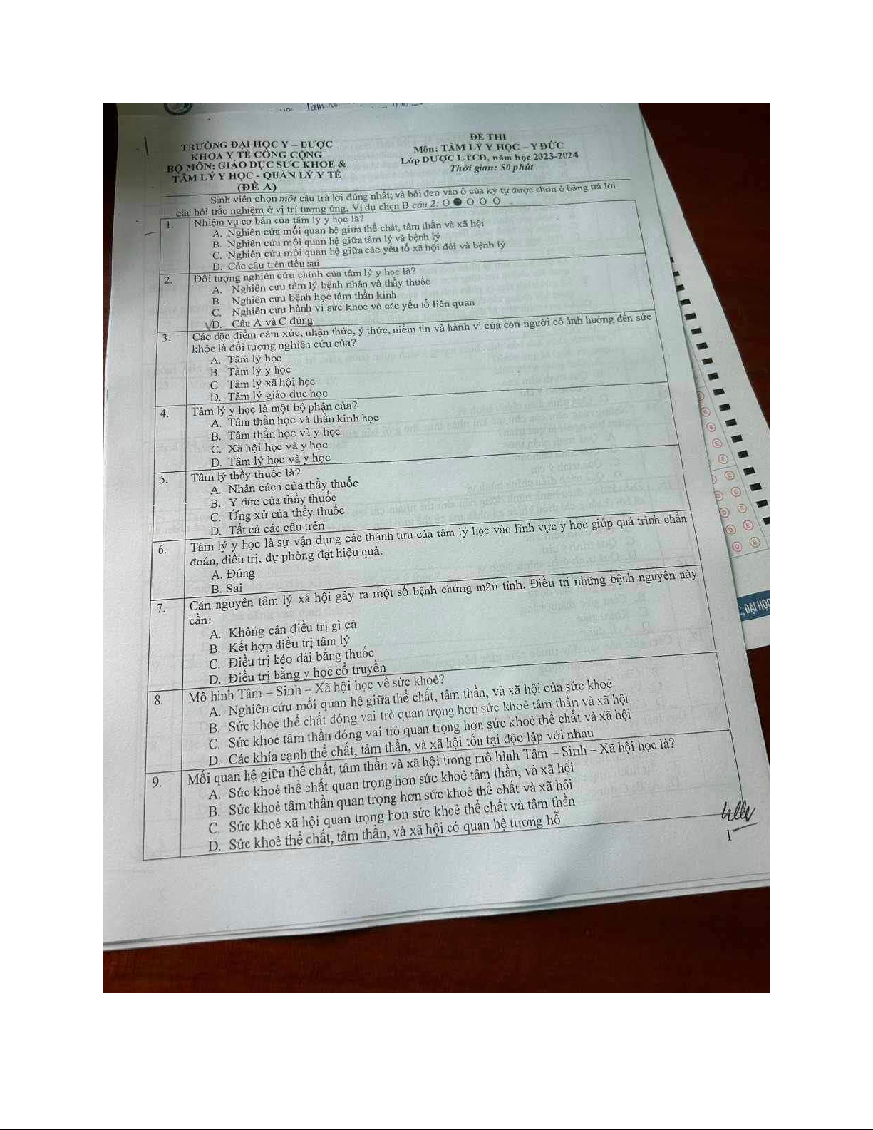 Đề thi môn Tâm lý học y học - Đạo đức y học | Trường Đại học Kỹ thuật Y - Dược Đà Nẵng