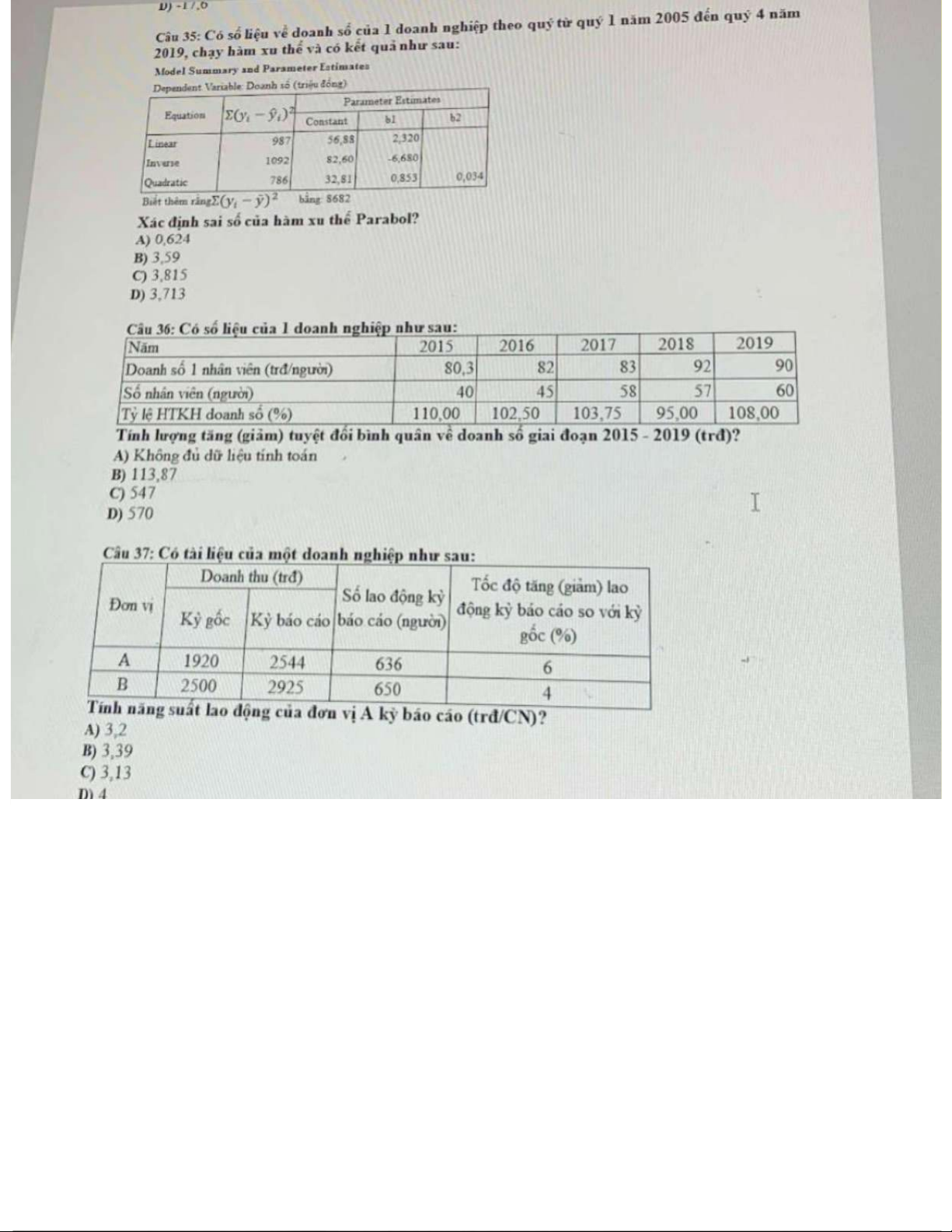 Bài Tập Thống Kê Kinh Doanh | Thống kê trong kinh tế và kinh doanh | Trường Đại học Kinh tế Quốc dân