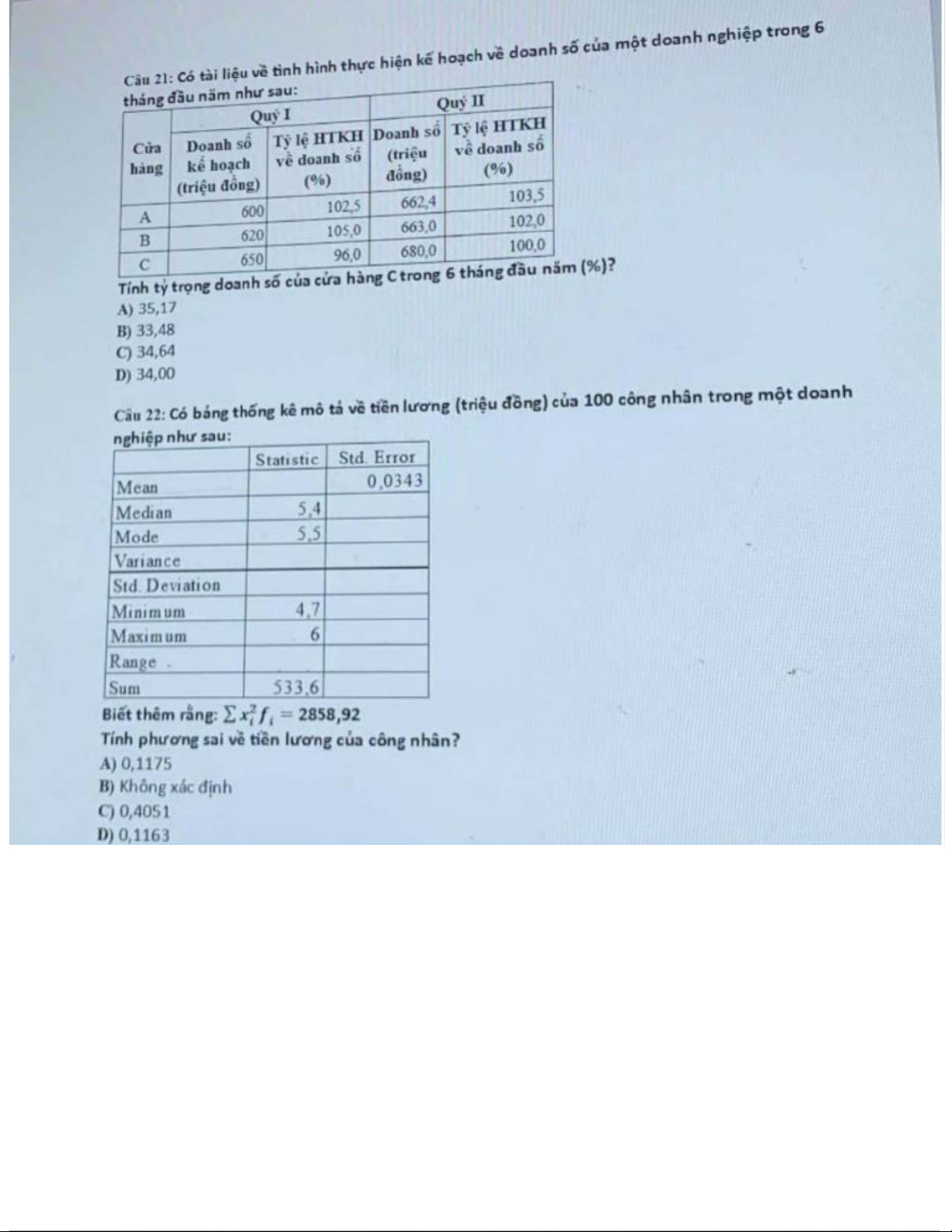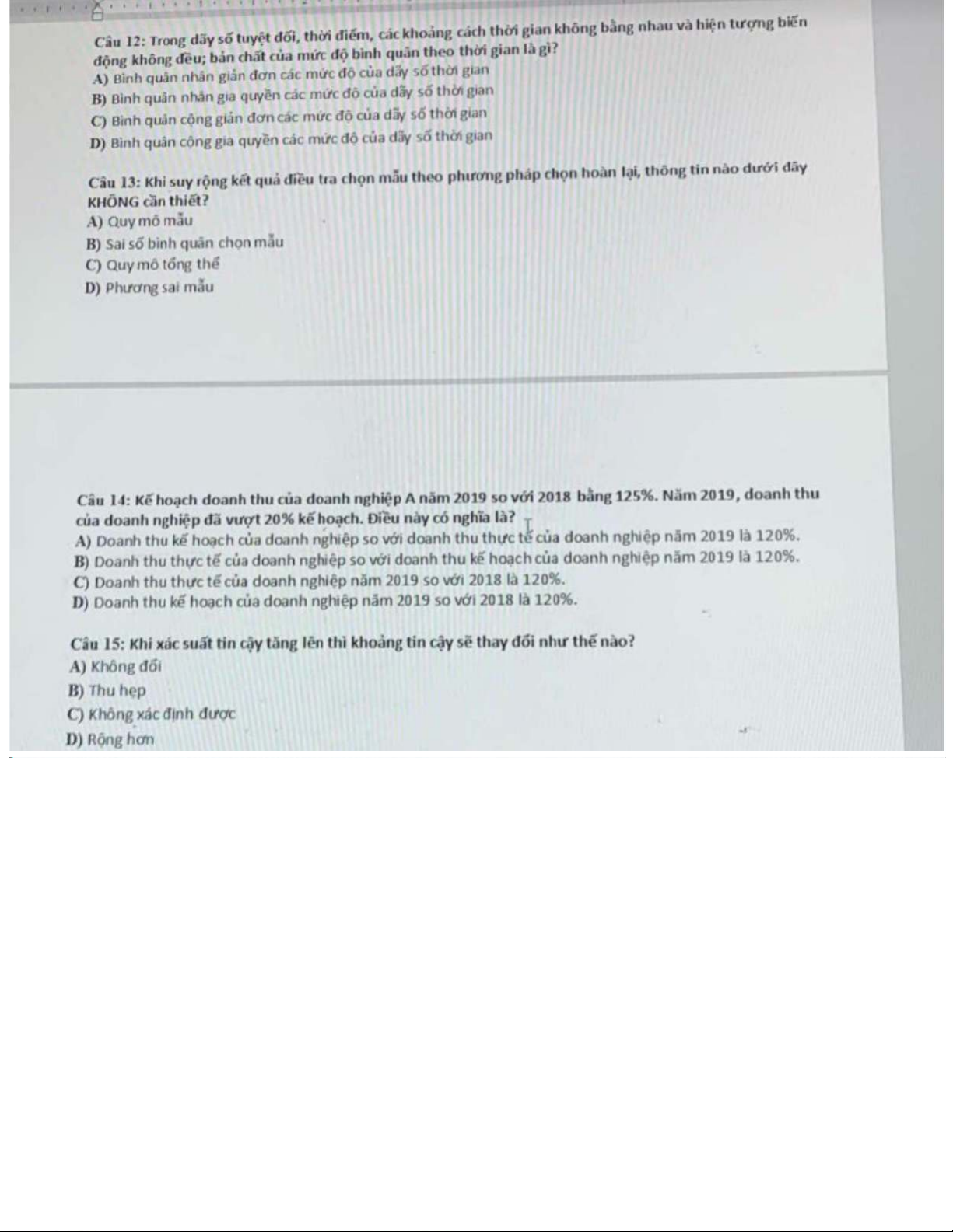 Đề thi môn Thống kê trong kinh tế và kinh doanh | Trường Đại học Kinh tế Quốc dân