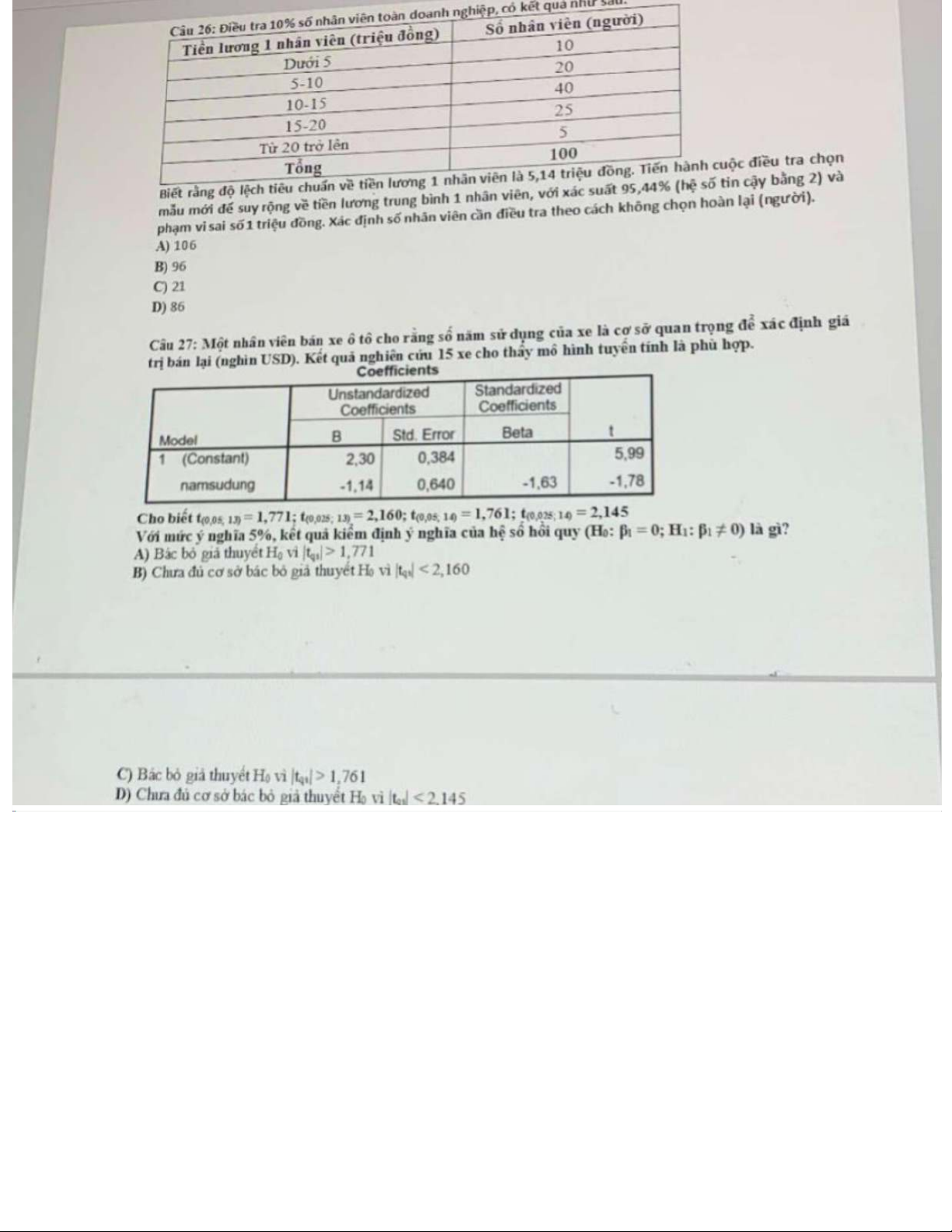 Ôn tập nhóm Bài Tập Hồi Quy | Thống kê trong kinh tế và kinh doanh | Trường Đại học Kinh tế Quốc dân