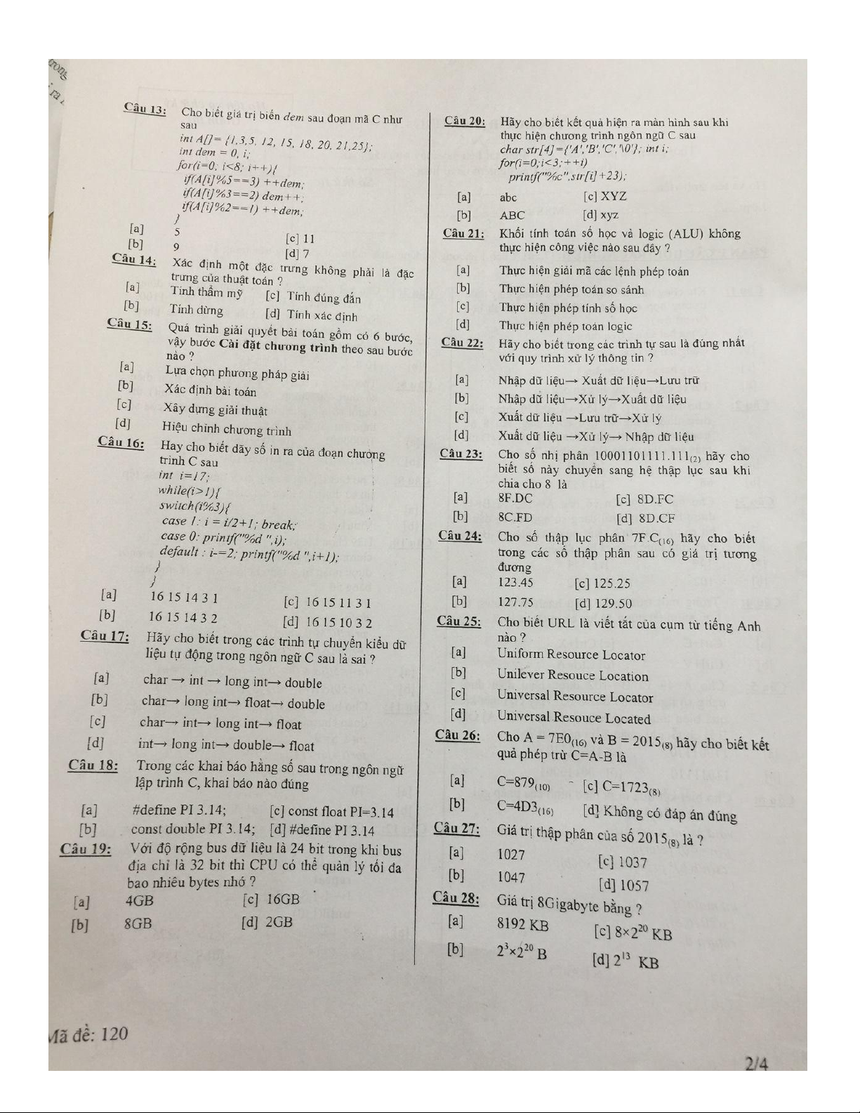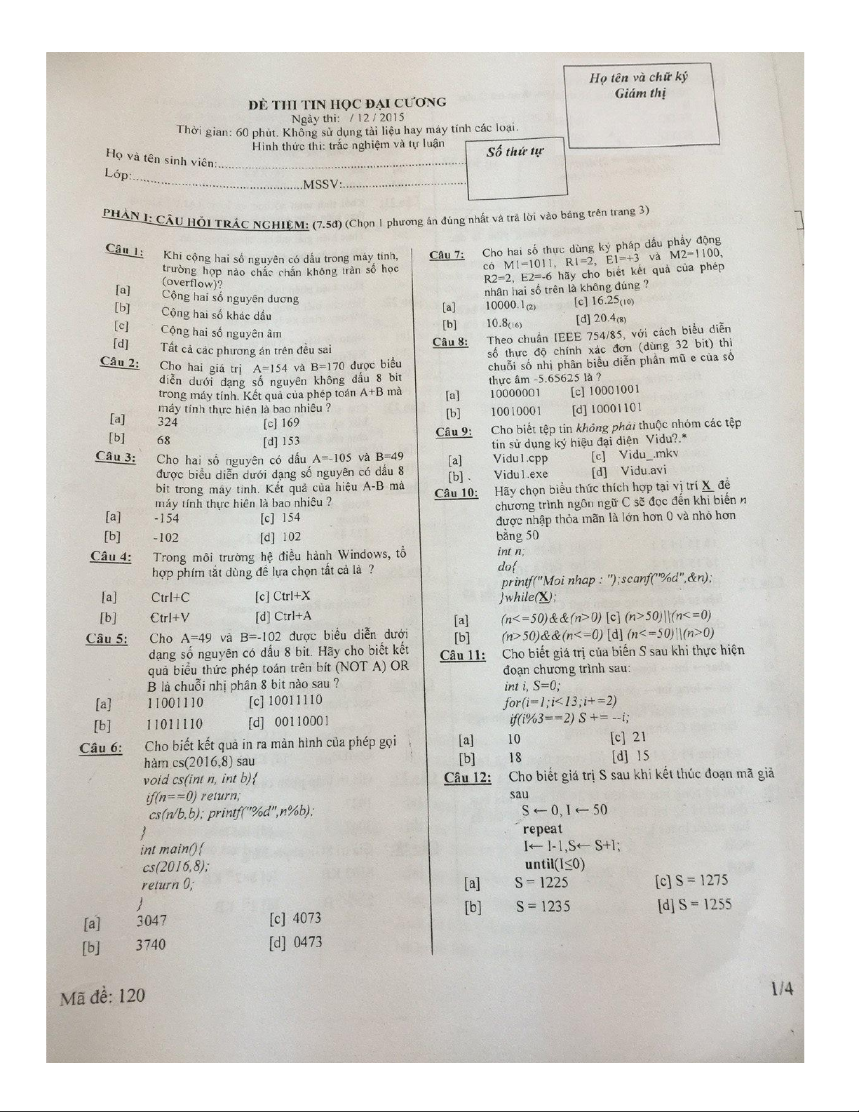 Đề thi môn Tin học đại cương | Trường Đại học Công Nghệ Đông Á