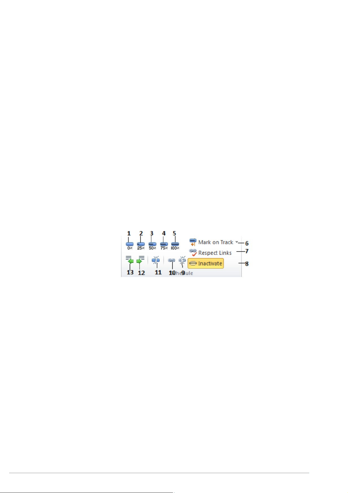 Câu 6: Hãy cho biết trong các nút lệnh sau, nút lệnh nào dùng để xóa bỏ liên kết giữa các công việc? A. Nút lệnh số 9 B. Nút lệnh số 11 C. Nút lệnh số 10 D. Nút lệnh số 7