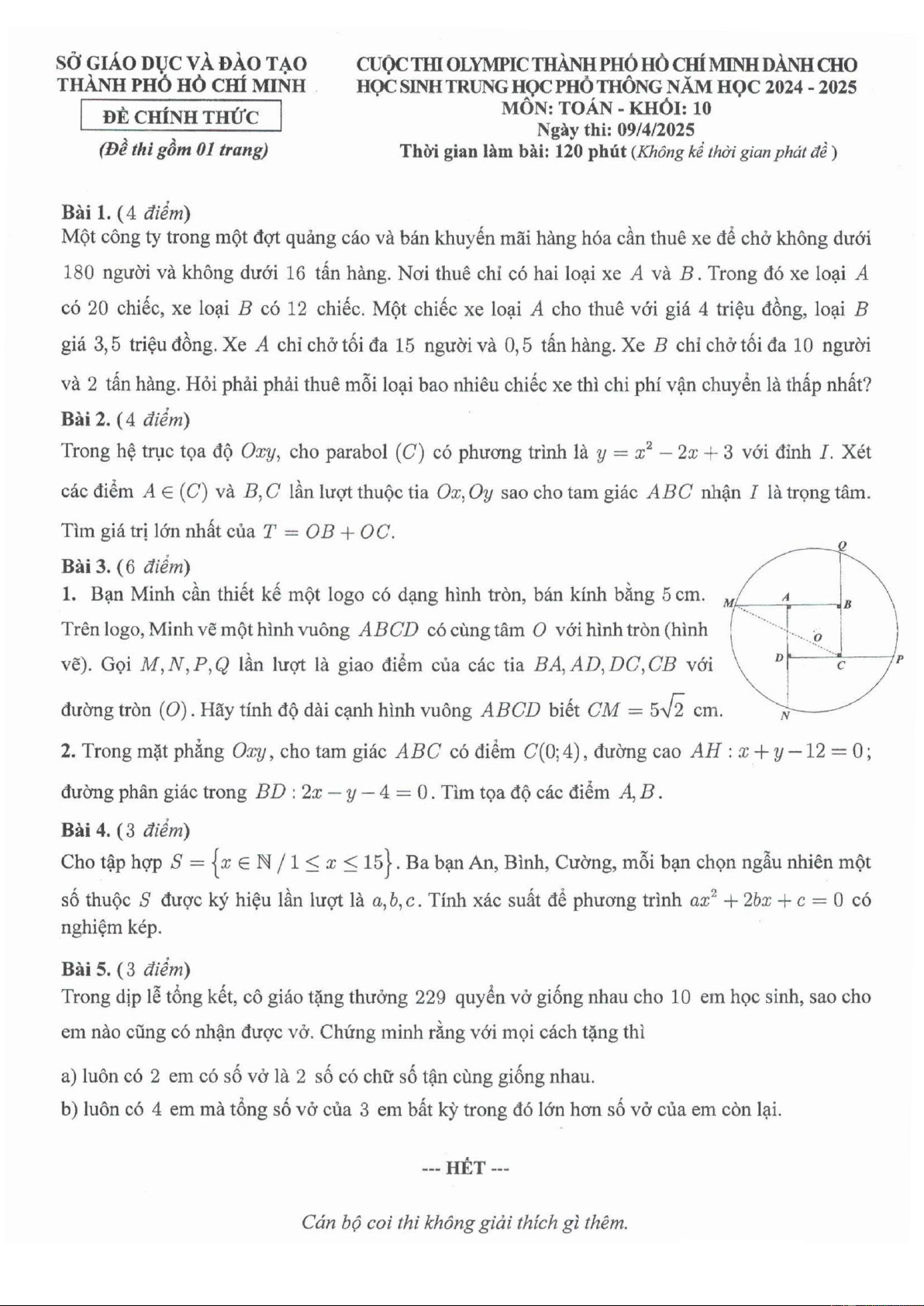 Đề thi Olympic Toán 10 năm 2024 – 2025 sở GD&ĐT TP Hồ Chí Minh