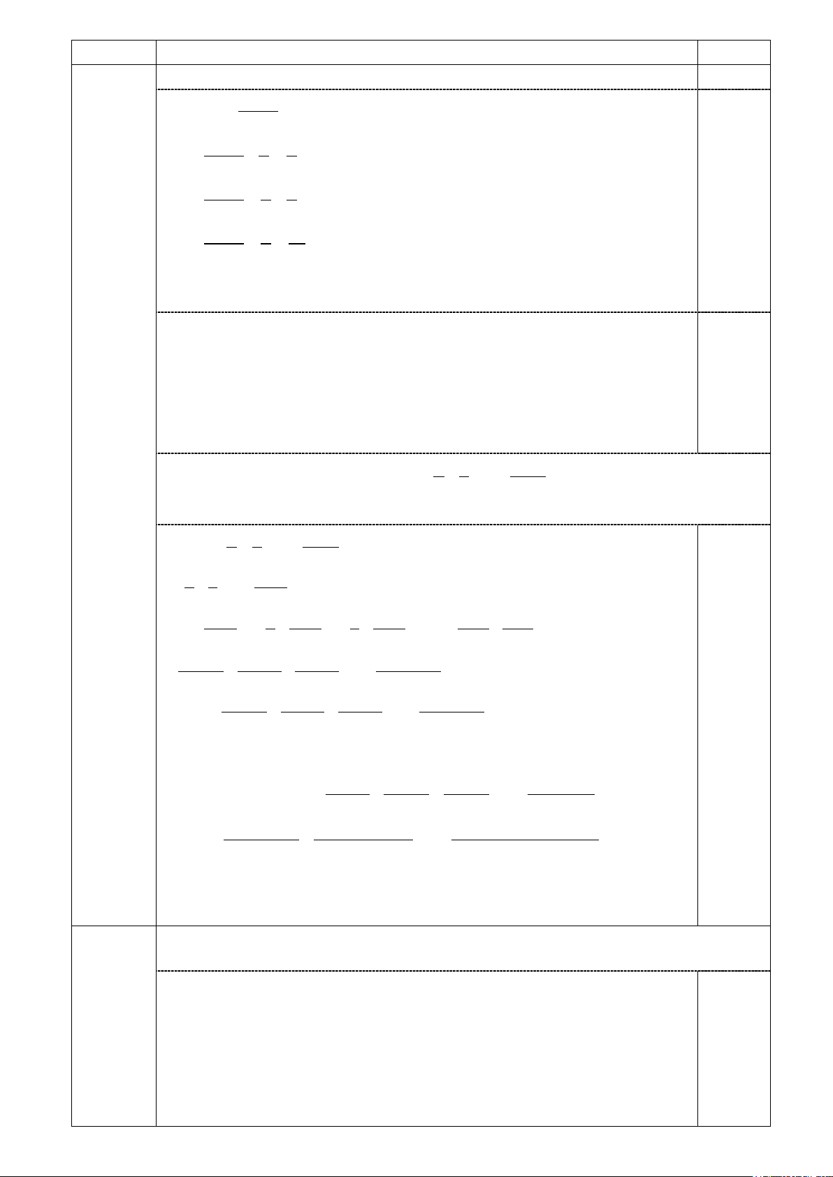 = [ 2024 + (-2024)] + [ 25 + (-15)] 0,25 = 0 + 10 = 10 0,5 2) 4 2024 1 − 4 1 4 2024 4 1 − 1 B = . + . +1 = . + . +1 5 2023 5 2023 5 5 2023 5 2023 5 0,25 4 2024 1 − 1 B = . + + 1 5 2023 2023 5 0,25 4 2023 6 = . + 5 2023 5 0,25 4 6 = .1+ 5 5 1 10 0,25 (3,0điểm) = = 2 5 0 1 1 1 1 1 C = 2025 − − − −...− − 2.3 4.9 6.12 38.60 40.63 1 1 1 1 1 = 1− .(1+ + + ...+ + ) 6 6 12 380 420 1 1 1 1 1 1 1 . 1 ... − + + + + + 0,25 3) 6 2.3 3.4 4.5 19.20 20.21 1 1 1 1 1 1 1 1 1 1 1 1 .1 ... = − + − + − + − + − + − 6 2 3 3 4 4 5 19 20 20 21 0,25 1 1 1 1 .1 = − + − 6 2 21 0,25 1 61 6 == 1− . = 1− 1 191 = 6 42 252 252 0,25