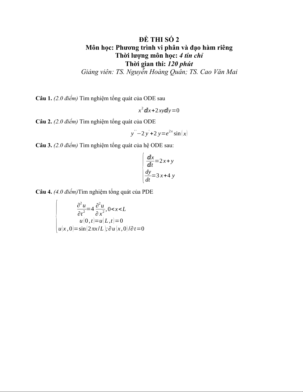 Môn học: Phương trình vi phân và đạo hàm riêng