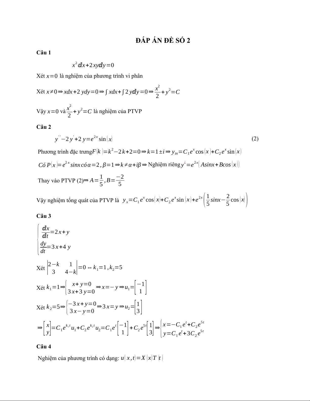 Vậy x=0 và x2 + y2=C là nghiệm của PTVP 2 Câu 2