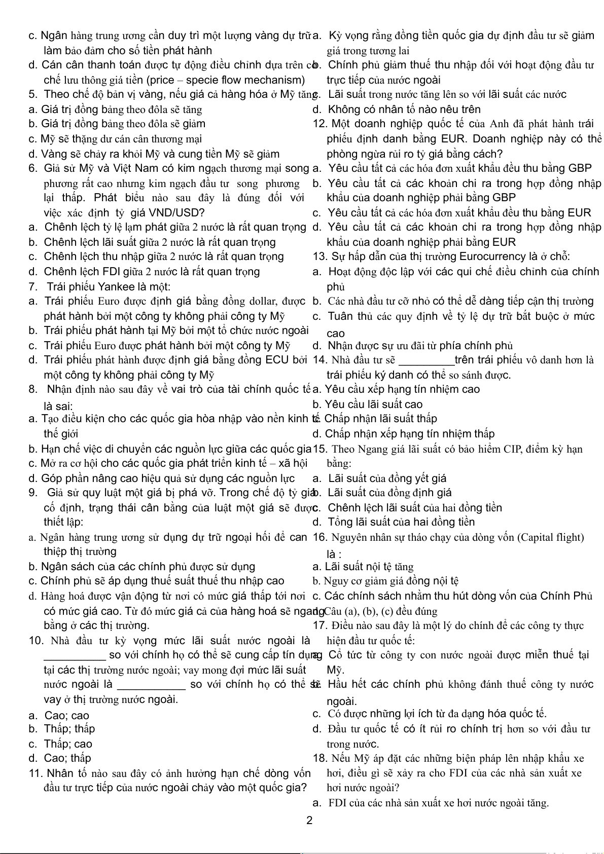 5. Nhận định nào sau đây về vai trò của tài chính quốc tế b. Yêu cầu lãi suất cao là sai: