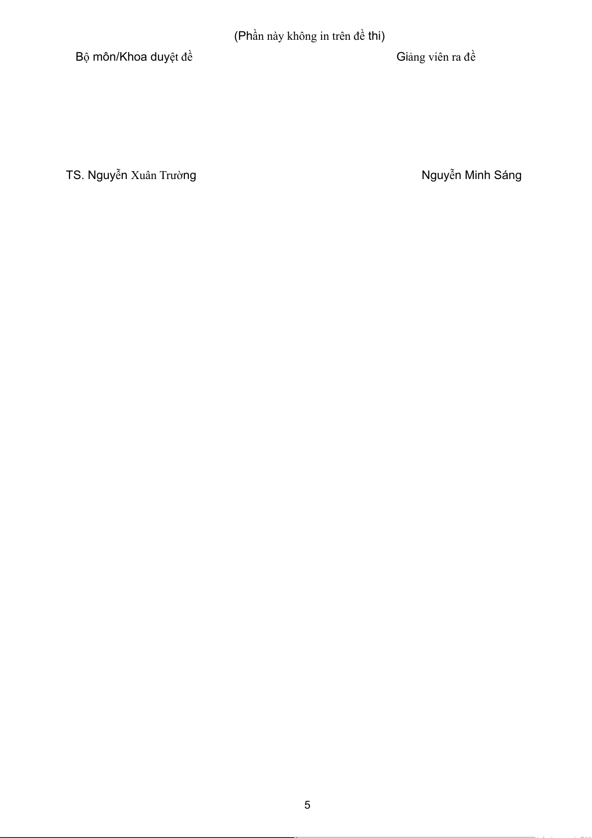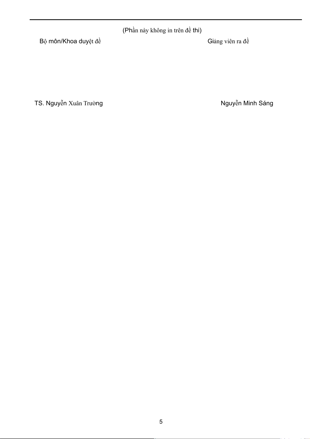 ần này không in trên đề B môn/Khoa duy ộ ệt đề Giảng viên ra đề