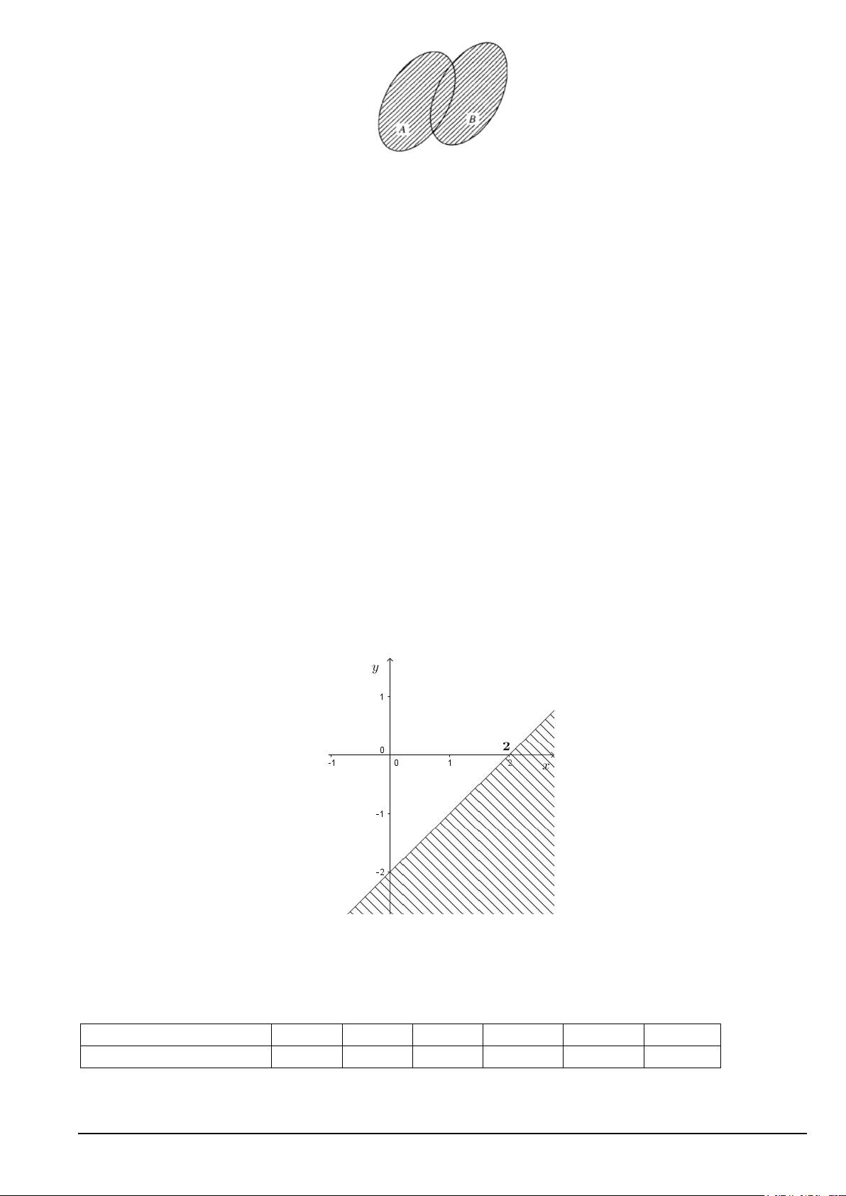 Câu 11. Cho hai tập hợp A và B . Sơ đồ ven phần bị gạch dưới đây mô tả phép tập hợp nào? Mã đề 102 Trang 1/4