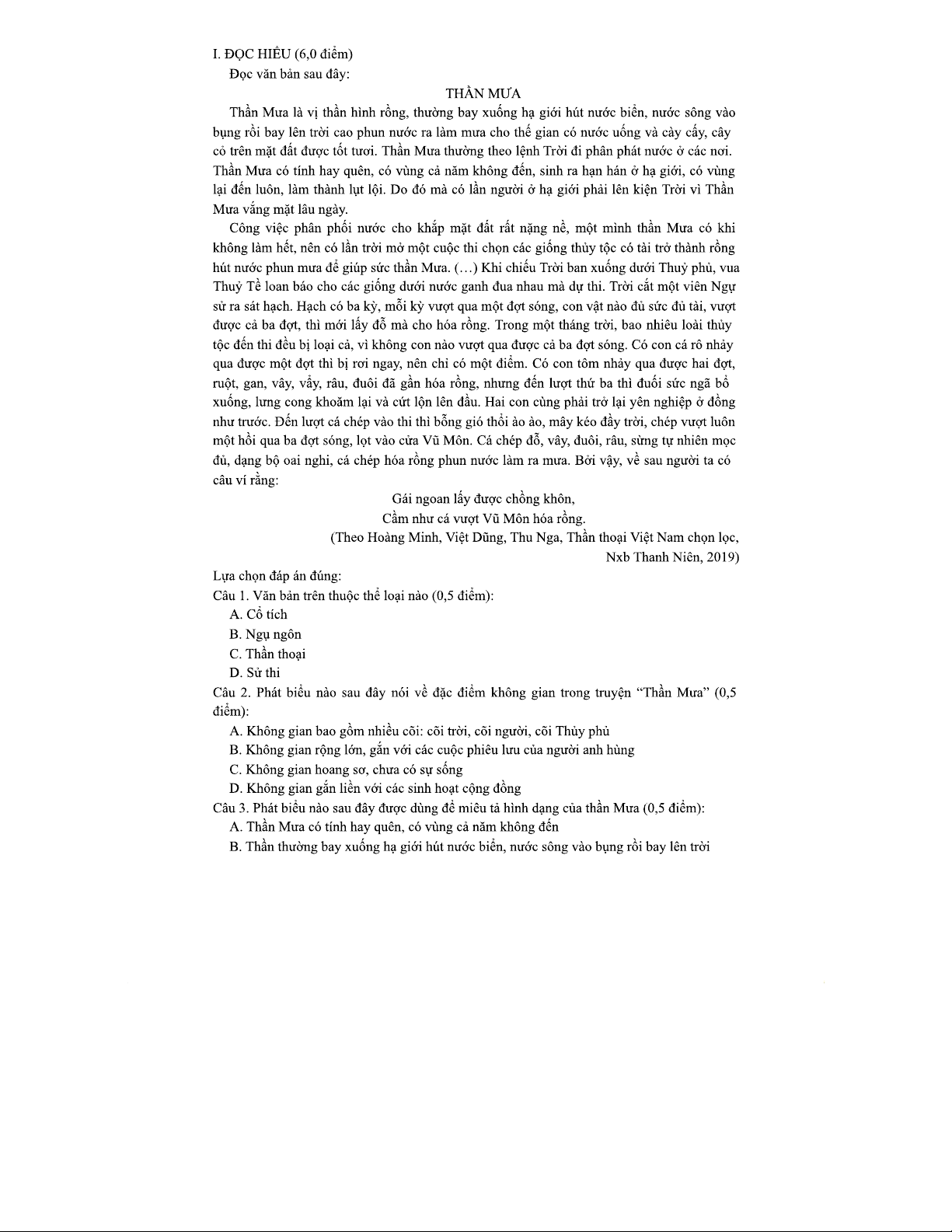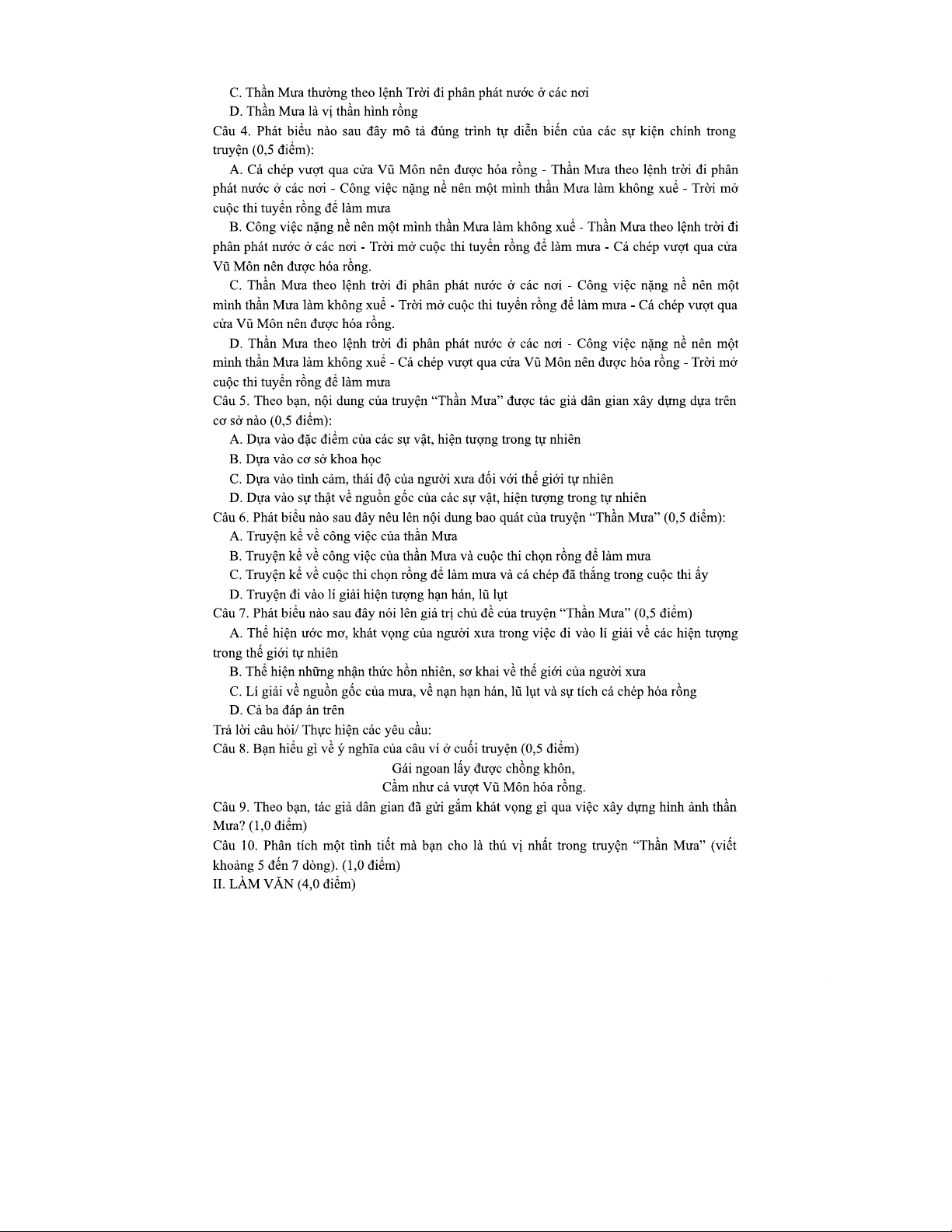 Đề thi thử giữa kỳ 1 - Thần Mưa (Môn Văn)